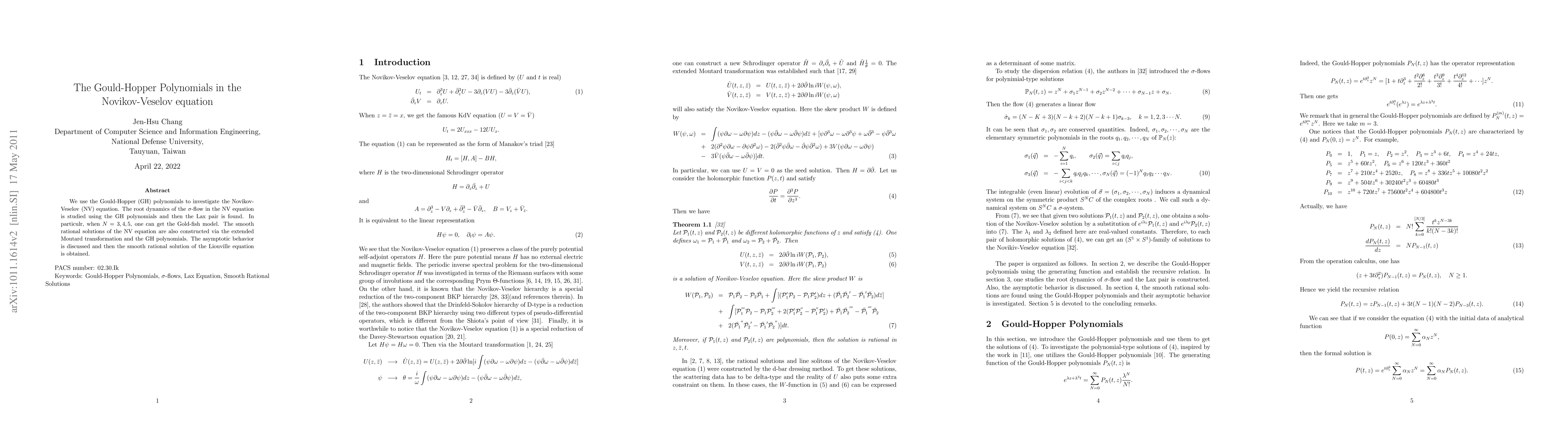 Researchers used Gould-Hopper polynomials to investigate the Novikov-Veselov equation, finding smooth rational solutions and a Lax pair, with specific applications including the Gold-fish model and the Liouville equation.