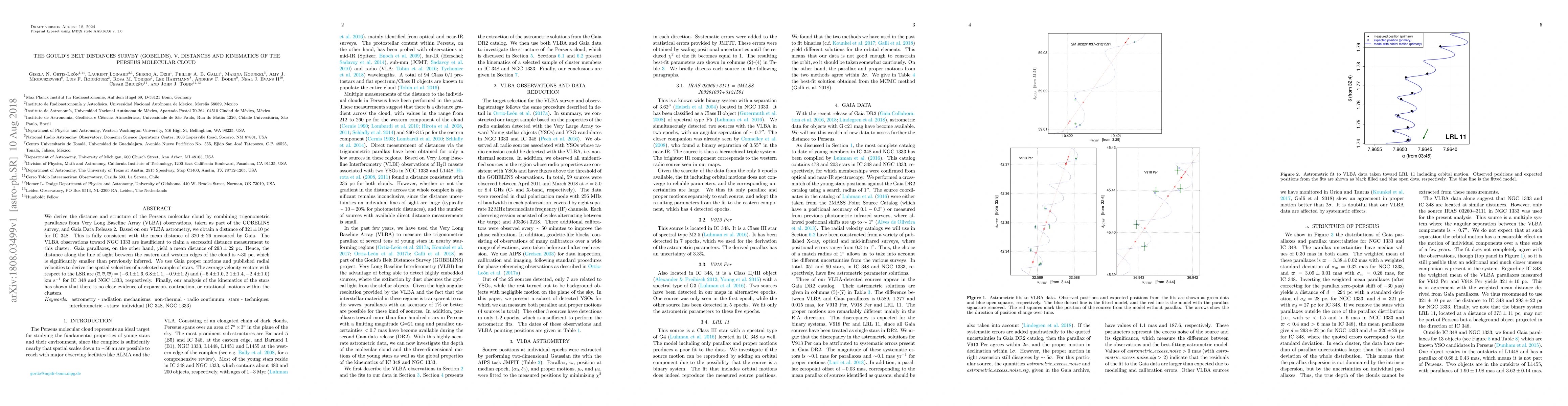 The GOBELINS survey combines VLBA and Gaia data to determine the distance and structure of the Perseus molecular cloud, finding a distance of 321±10 pc for IC 348 and a smaller distance difference between its eastern and western edges than previously inferred. Kinematic analysis shows no clear evidence of expansion, contraction, or rotation within the clusters.