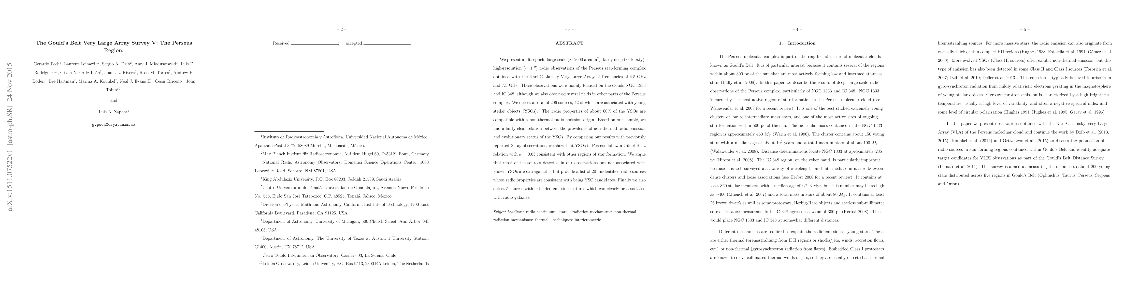 We present multi-epoch, large-scale ($\sim$ 2000 arcmin${}^2$), fairly deep ($\sim$ 16 $\mu$Jy), high-resolution ($\sim$ 1") radio observations of the Perseus star-forming complex obtained with the Karl G. Jansky Very Large Array at frequencies of 4.5 GHz and 7.5 GHz. These observations were mainly focused on the clouds NGC 1333 and IC 348, although we also observed several fields in other parts of the Perseus complex. We detect a total of 206 sources, 42 of which are associated with young stellar objects (YSOs). The radio properties of about 60% of the YSOs are compatible with a non-thermal radio emission origin. Based on our sample, we find a fairly clear relation between the prevalence of non-thermal radio emission and evolutionary status of the YSOs. By comparing our results with previously reported X-ray observations, we show that YSOs in Perseus follow a G\"udel-Benz relation with $\kappa$ = 0.03 consistent with other regions of star formation. We argue that most of the sources detected in our observations but not associated with known YSOs are extragalactic, but provide a list of 20 unidentified radio sources whose radio properties are consistent with being YSO candidates. Finally we also detect 5 sources with extended emission features which can clearly be associated with radio galaxies.