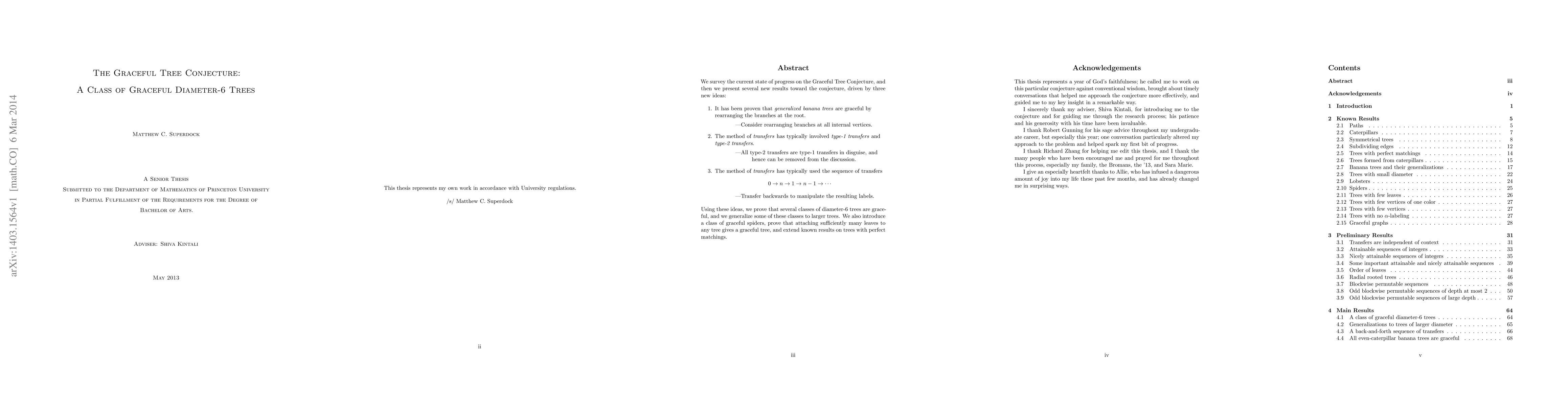 This paper surveys progress on the Graceful Tree Conjecture and introduces new ideas to prove that several diameter-6 trees are graceful. It generalizes banana trees and simplifies the method of transfers, ultimately extending results to larger trees and introducing graceful spiders.