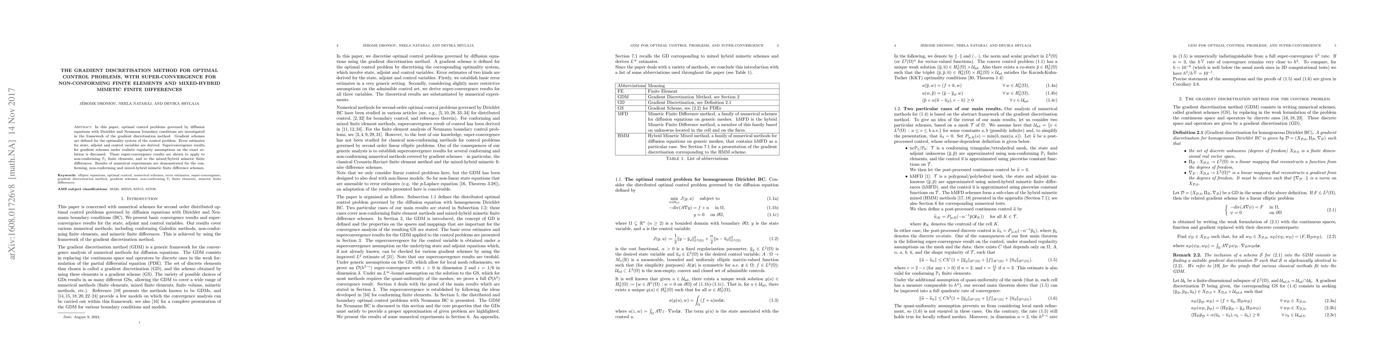 This paper investigates optimal control problems governed by diffusion equations using a gradient discretisation method with error estimates and superconvergence results for non-conforming finite elements and mixed-hybrid mimetic finite differences.