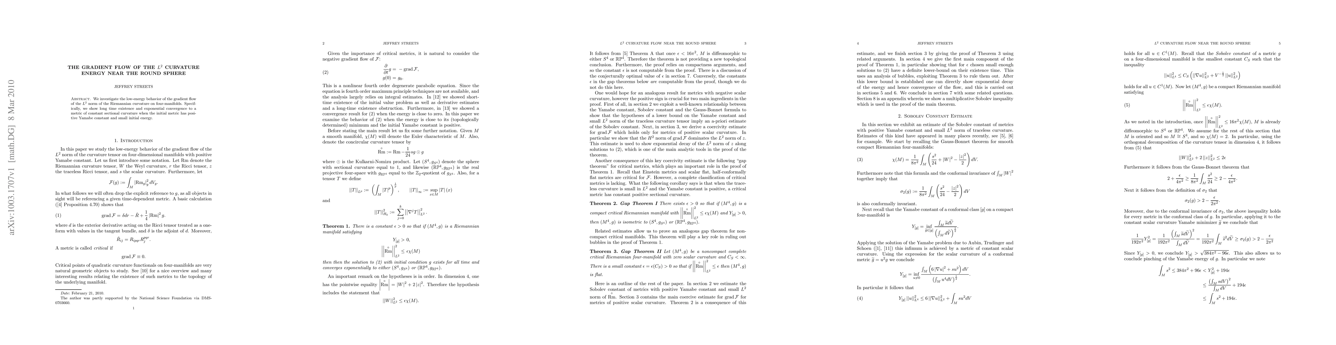 We investigate the low-energy behavior of the gradient flow of the $L^2$ norm of the Riemannian curvature on four-manifolds. Specifically, we show long time existence and exponential convergence to a metric of constant sectional curvature when the initial metric has positive Yamabe constant and small initial energy.