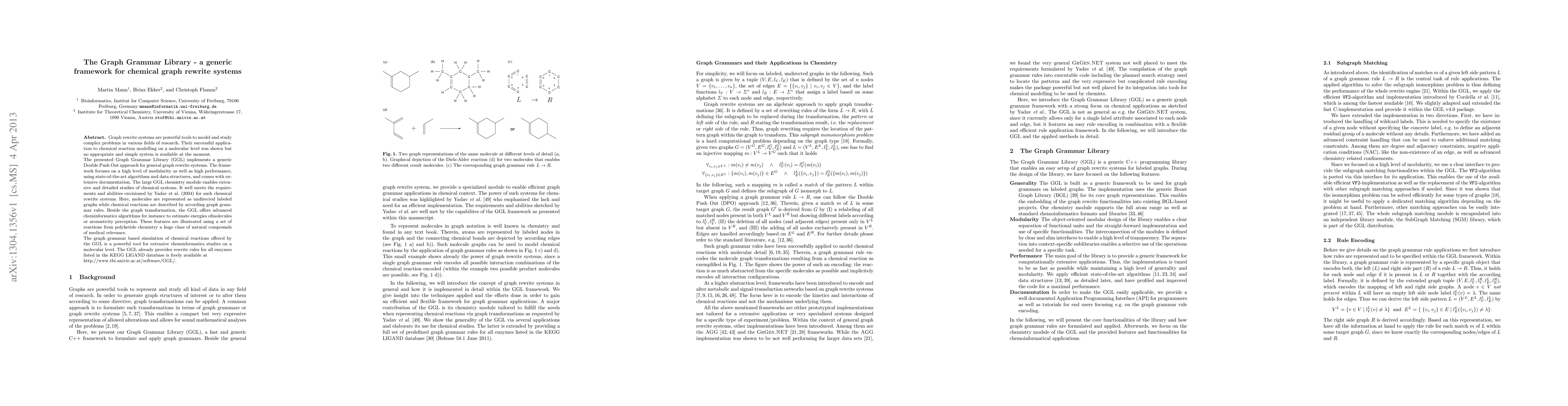 The Graph Grammar Library (GGL) provides a generic framework for implementing double pushout graph rewrite systems, focusing on high modularity and performance. It includes a chemistry module for detailed studies of chemical systems, offering advanced cheminformatics algorithms and is freely available for extensive cheminformatics research.