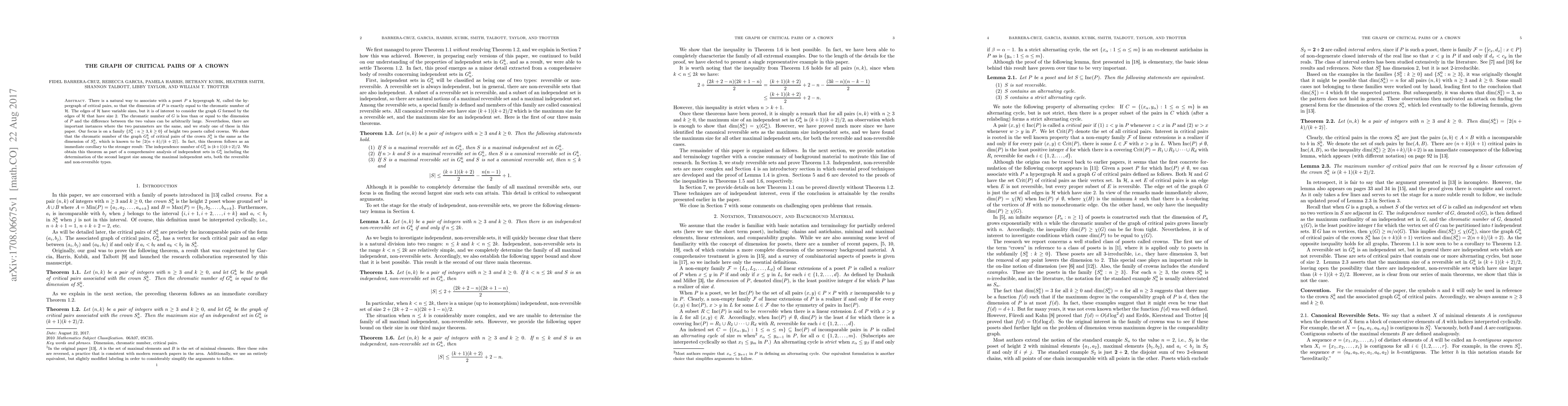The paper studies the relationship between the dimension of a poset (crown) and its associated graph (critical pairs), finding that for crowns, these two values coincide in specific instances. The authors also analyze independent sets in this graph and determine their maximum sizes.