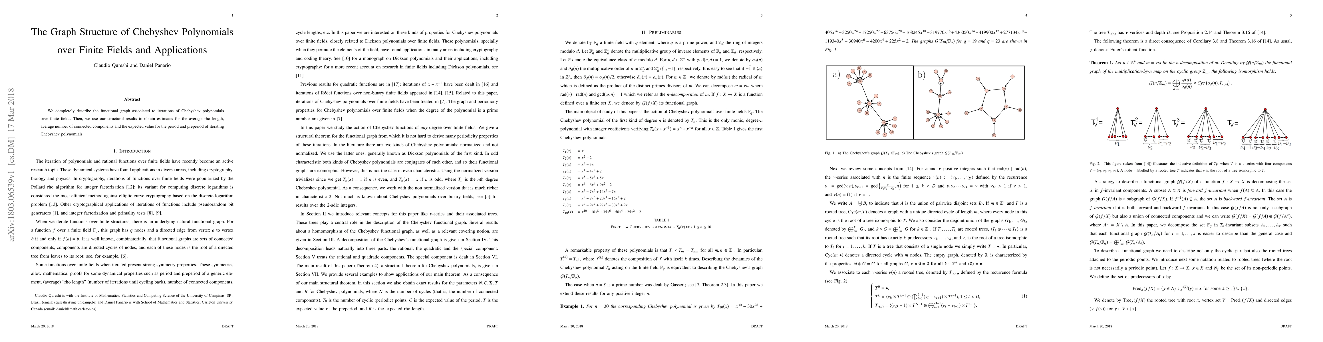 Summary: The paper details the functional graph of Chebyshev polynomials over finite fields and uses this structure to estimate the average rho length, connected components, and the expected period and preperiod of polynomial iterations.