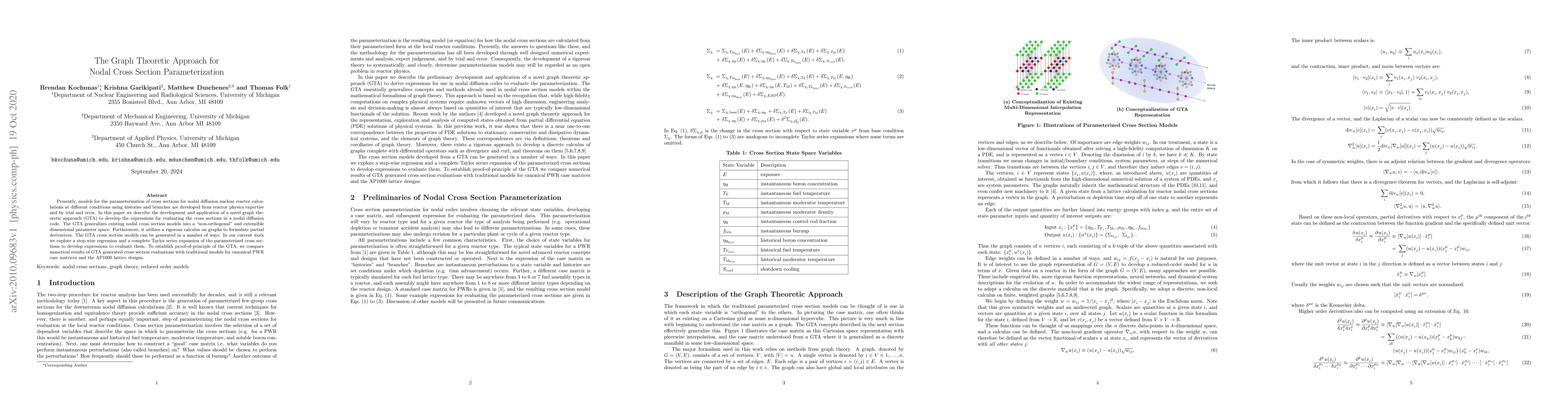 Presently, models for the parameterization of cross sections for nodal diffusion nuclear reactor calculations at different conditions using histories and branches are developed from reactor physics expertise and by trial and error. In this paper we describe the development and application of a novel graph theoretic approach (GTA) to develop the expressions for evaluating the cross sections in a nodal diffusion code. The GTA generalizes existing nodal cross section models into a ``non-orthogonal'' and extensible dimensional parameter space. Furthermore, it utilizes a rigorous calculus on graphs to formulate partial derivatives. The GTA cross section models can be generated in a number of ways. In our current work we explore a step-wise regression and a complete Taylor series expansion of the parameterized cross sections to develop expressions to evaluate them. To establish proof-of-principle of the GTA, we compare numerical results of GTA generated cross section evaluations with traditional models for canonical PWR case matrices and the AP1000 lattice designs.
