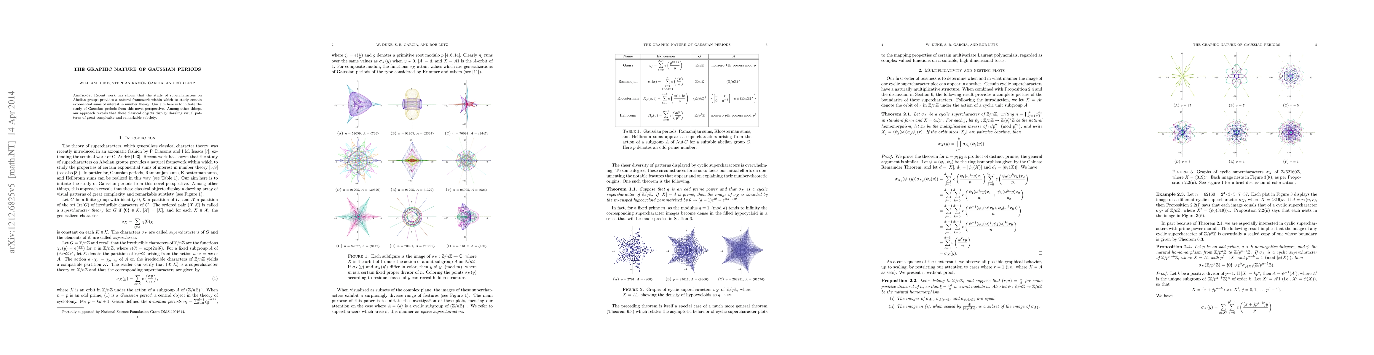 Recent work has shown that the study of supercharacters on abelian groups provides a natural framework within which to study certain exponential sums of interest in number theory. Our aim here is to initiate the study of Gaussian periods from this novel perspective. Among other things, our approach reveals that these classical objects display dazzling visual patterns of great complexity and remarkable subtlety.