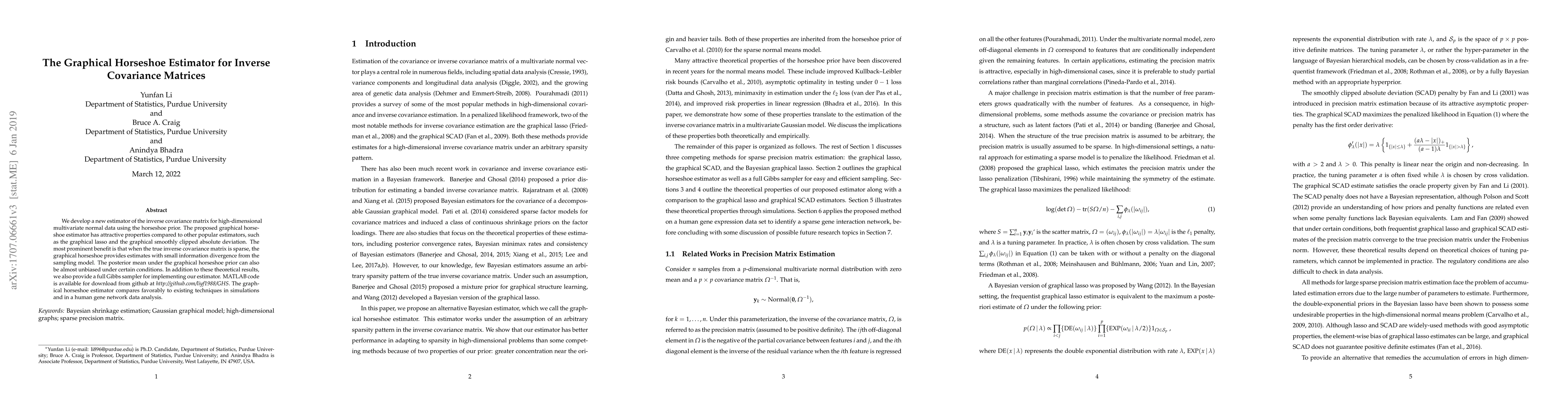 This paper introduces a new graphical horseshoe estimator for high-dimensional inverse covariance matrices, which outperforms existing methods like the graphical lasso and SCAD. It offers small information divergence and almost unbiased posterior mean under certain conditions, with accompanying MATLAB code available for implementation.