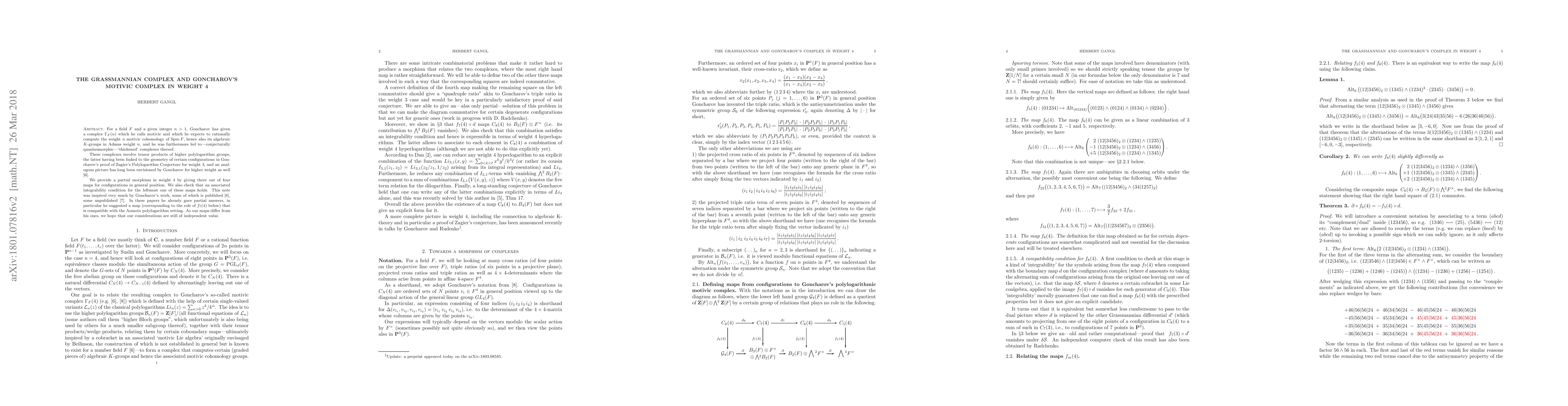 For a field $F$ and a given integer $n>1$, Goncharov has given a complex $\Gamma_F(n)$ which he calls motivic and which he expects to rationally compute the weight $n$ motivic cohomology of $\text{Spec }F$, and hence its algebraic $K$-groups in Adams weight $n$, and he was also led to---conjecturally quasiisomorphic---`thickened' complexes thereof. These complexes involve tensor products of higher Bloch groups, the latter having been linked to the geometry of certain configurations in Goncharov's proof of Zagier's Polylogarithm Conjecture for weight 3, and an analogous picture has long been envisioned by Goncharov for higher weight as well. We provide a partial morphism in weight 4 by giving three out of four maps for configurations in general position.