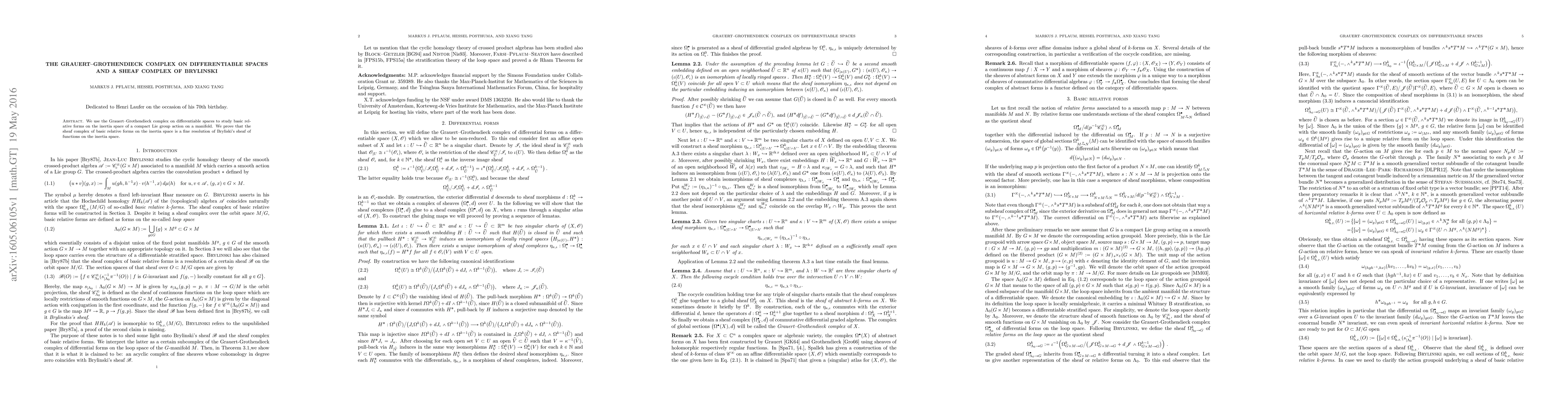 We use the Grauert--Grothendieck complex on differentiable spaces to study basic relative forms on the inertia space of a compact Lie group action on a manifold. We prove that the sheaf complex of basic relative forms on the inertia space is a fine resolution of Bryliski's sheaf of functions on the inertia space.
