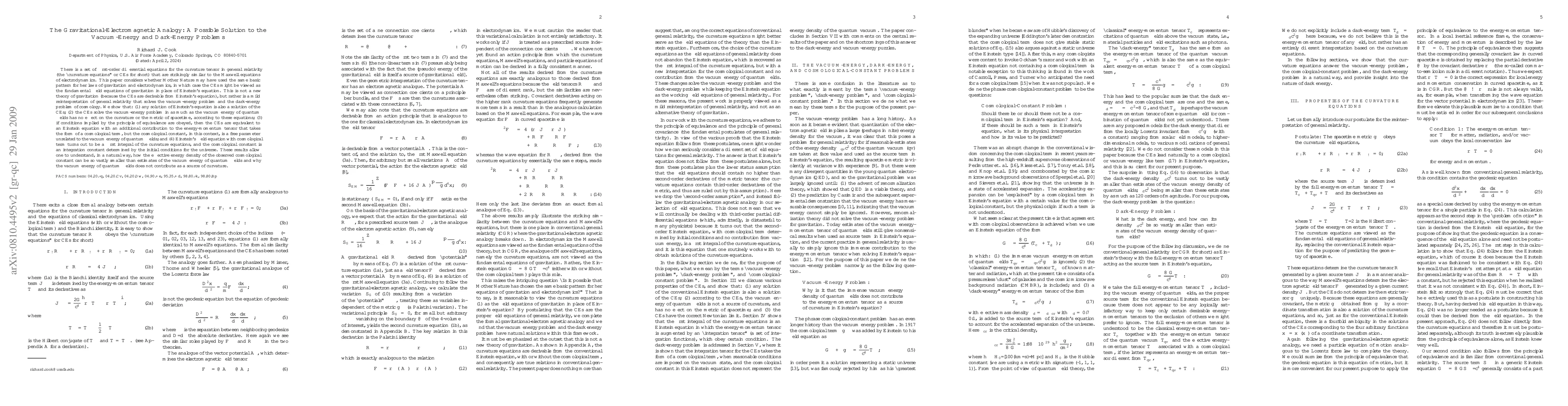 There is a set of first-order differential equations for the curvature tensor in general relativity (the curvature equations or CEs for short) that are strikingly similar to the Maxwell equations of electrodynamics. This paper considers whether Mother Nature may have used the same basic pattern for her laws of gravitation and electrodynamics, in which case the CEs might be viewed as the field equations of gravitation in place of Einstein's equation. This is not a new theory of gravitation (because the curvature equations are derivable from Einstein's equation), but rather is a mild reinterpretation of general relativity that solves the vacuum-energy problem and the dark-energy problem of cosmology. The results of this paper allow one to understand how the effective energy density of the observed cosmological constant can be so vastly smaller than estimates of the vacuum energy of quantum fields and why the vacuum energy of quantum fields does not contribute as a source of curvature.