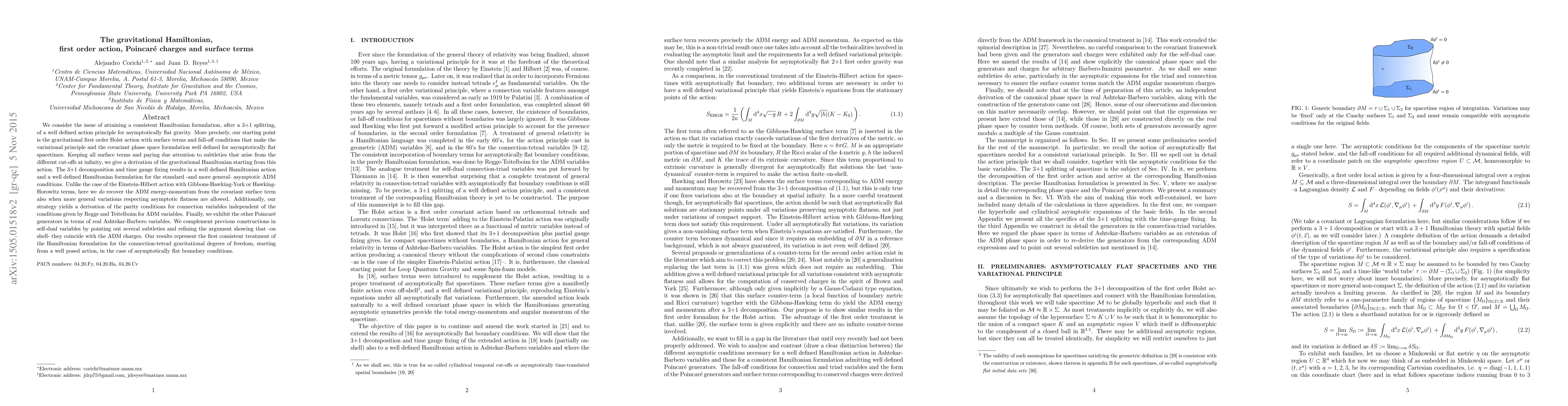 This paper develops a consistent Hamiltonian formulation for asymptotically flat gravity using the first-order Holst action, deriving the gravitational Hamiltonian and recovering the ADM energy-momentum from the covariant surface term. It also provides a derivation of the parity conditions for connection variables and exhibits Poincaré generators in terms of real Ashtekar-Barbero variables.