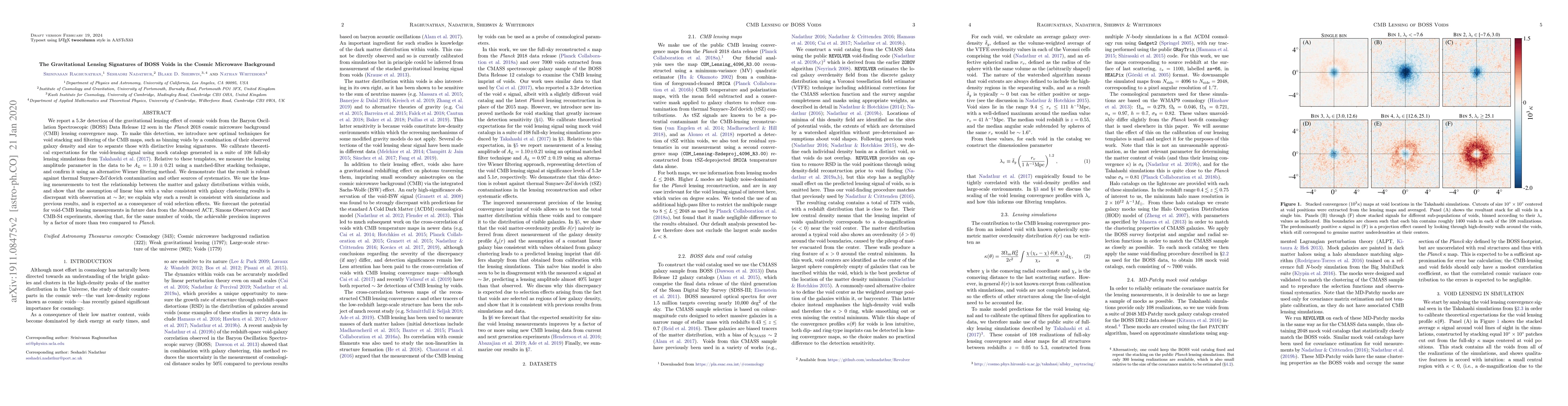 This paper reports a $5.3\sigma$ detection of gravitational lensing from BOSS voids using the Planck 2018 CMB lensing map, employing advanced void stacking techniques. The study finds discrepancies between observed lensing and linear bias assumptions, suggesting future experiments will significantly improve precision.