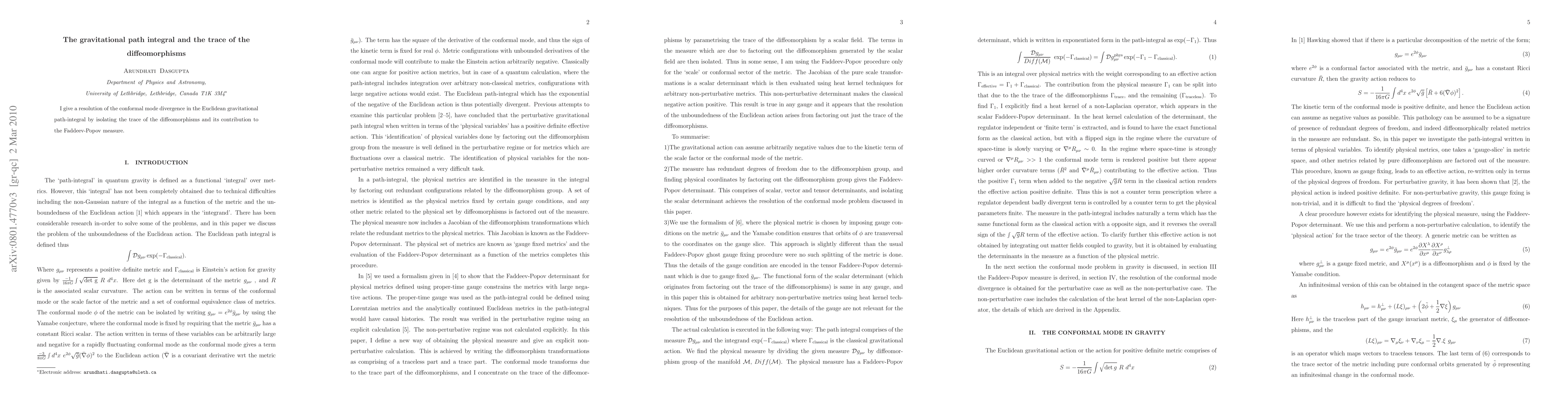 I give a resolution of the conformal mode divergence in the Euclidean gravitational path-integral by isolating the trace of the diffeomorphisms and its contribution to the Faddeev-Popov measure.
