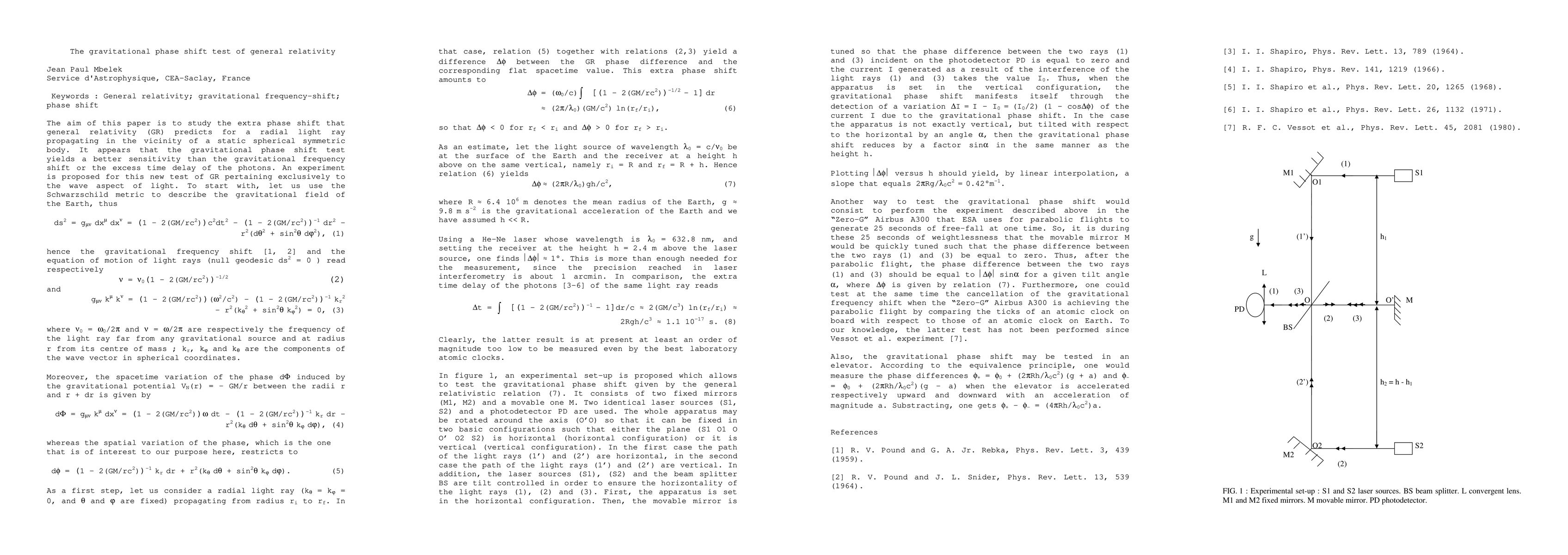 This paper investigates the additional phase shift predicted by general relativity for light rays near a massive body, demonstrating that this gravitational phase shift test offers greater sensitivity compared to other methods. An experimental proposal is made to specifically test this wave aspect of light in general relativity.
