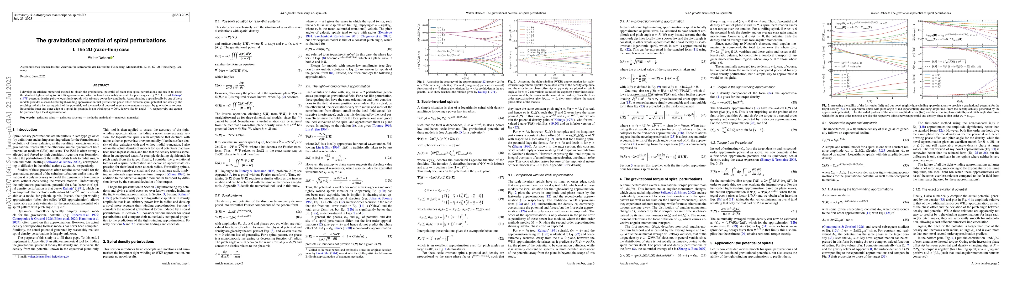 I develop an efficient numerical method to obtain the gravitational potential of razor-thin spiral perturbations and use it to assess the standard tight-winding (or WKB) approximation, which is found reasonably accurate for pitch angles $\alpha\lesssim 20\deg$. I extend Kalnajs' (1971)' potential-density pairs to logarithmic spirals with arbitrary power-law amplitude. Approximating a spiral locally by one of these models provides a second-order tight-winding approximation that predicts the phase offset between spiral potential and density, the resulting radially increasing pitch of the potential, and the non-local outward angular-momentum transport by gravitational torques. Beyond the inner and outer edge of a spiral with m arms, its potential is not winding ($\alpha=90\deg$), decays like $R^m$ and $R^{-1-m}$, respectively, and cannot be predicted by a local approximation.