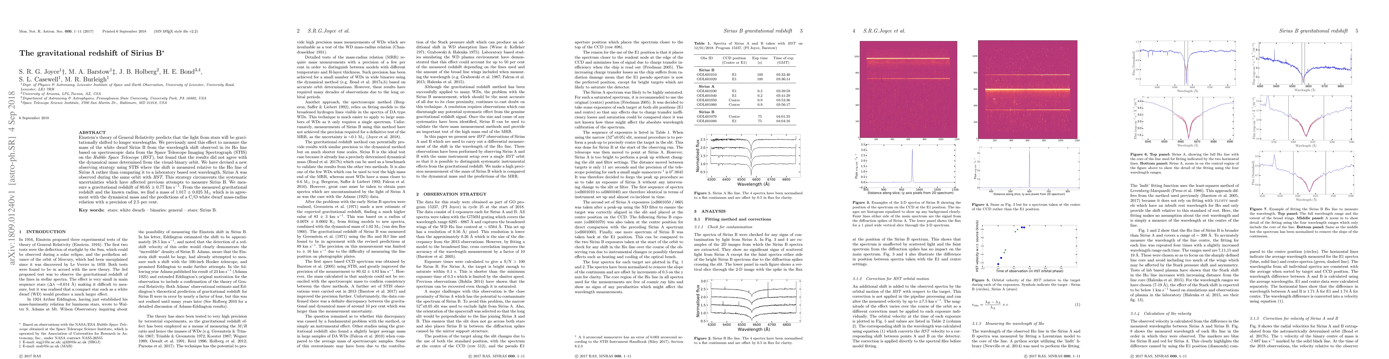 This paper reports a refined measurement of the gravitational redshift of Sirius B using HST's STIS, comparing the redshift relative to Sirius A's H-alpha line to mitigate systematic errors. The new measurement yields a mass of 1.017 +/- 0.025 Msol, aligning with the dynamical mass and theoretical predictions.