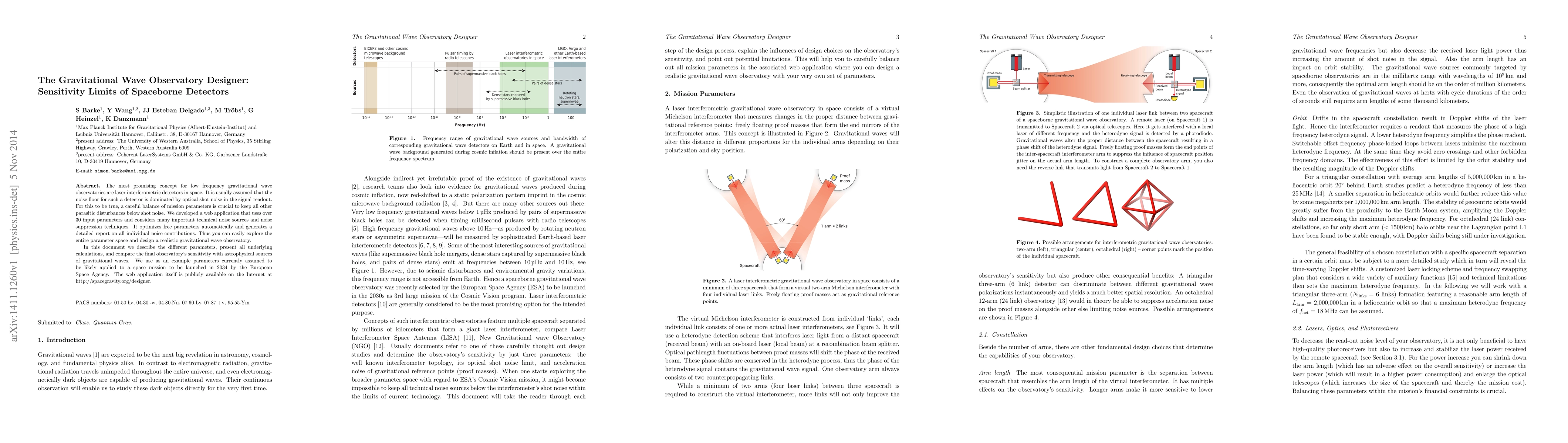 A web application was developed to design and optimize gravitational wave observatories in space, considering various technical noise sources and optimizing parameters for realistic sensitivity limits. The tool allows users to explore the entire parameter space and compare their observatory's sensitivity with astrophysical sources of gravitational waves.