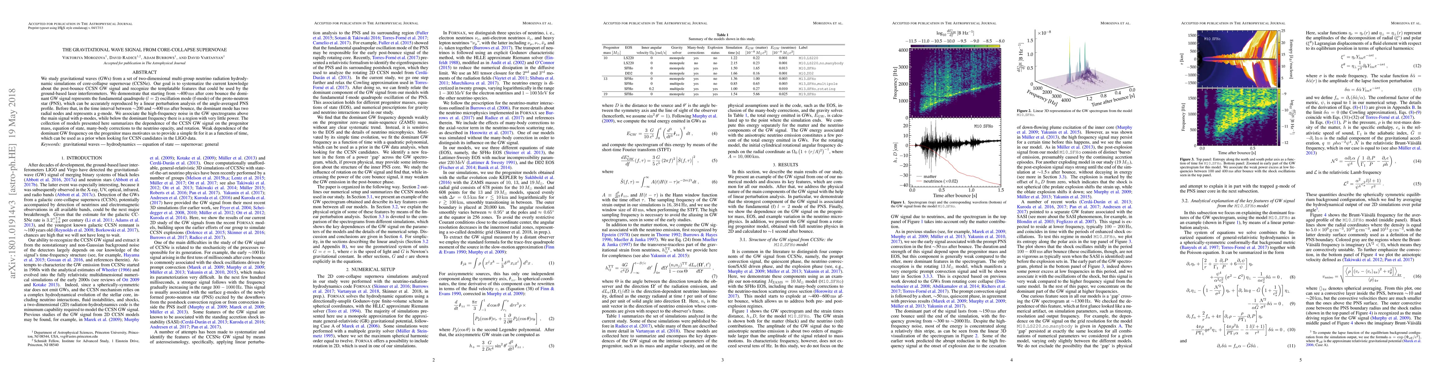 This paper investigates gravitational waves from core-collapse supernovae using multi-group neutrino radiation hydrodynamic simulations, identifying the f-mode as the dominant signal post-bounce. The study also highlights the g-mode and p-mode contributions, and provides a simple fit for the dominant GW frequency as a function of time for use in LIGO data analysis.