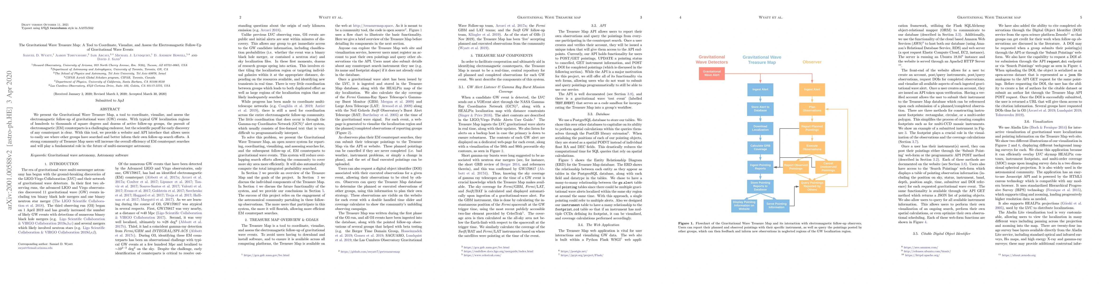 The Gravitational Wave Treasure Map is a web-based tool designed to coordinate, visualize, and assess electromagnetic follow-up efforts for gravitational wave events. It aims to enhance the efficiency of counterpart searches by providing a shared platform for follow-up groups to inform each other on their search areas.