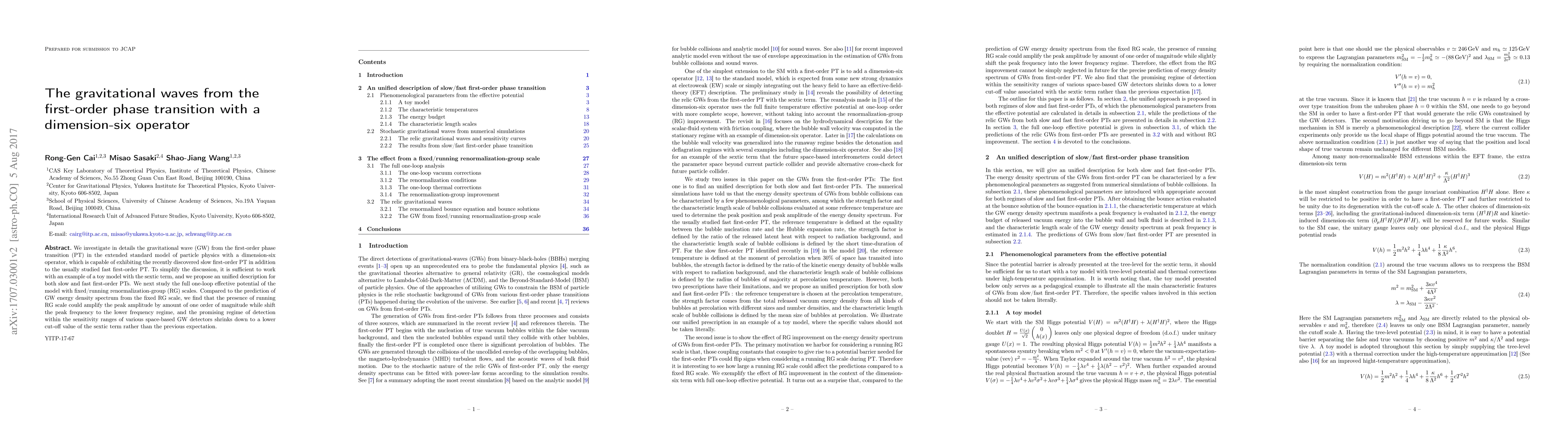 We investigate in details the gravitational wave (GW) from the first-order phase transition (PT) in the extended standard model of particle physics with a dimension-six operator, which is capable of exhibiting the recently discovered slow first-order PT in addition to the usually studied fast first-order PT. To simplify the discussion, it is sufficient to work with an example of a toy model with the sextic term, and we propose an unified description for both slow and fast first-order PTs. We next study the full one-loop effective potential of the model with fixed/running renormalization-group (RG) scales. Compared to the prediction of GW energy density spectrum from the fixed RG scale, we find that the presence of running RG scale could amplify the peak amplitude by amount of one order of magnitude while shift the peak frequency to the lower frequency regime, and the promising regime of detection within the sensitivity ranges of various space-based GW detectors shrinks down to a lower cut-off value of the sextic term rather than the previous expectation.