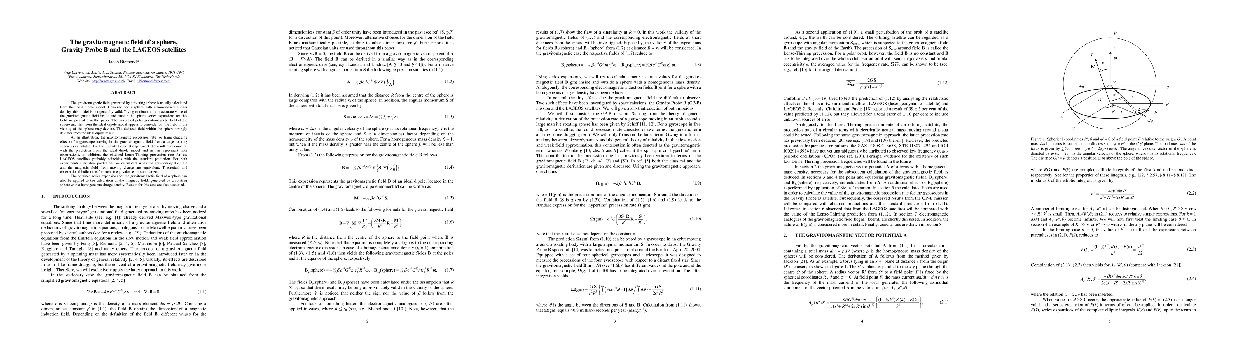 A paper calculates the gravitomagnetic field of a sphere using series expansions, finding it deviates from the ideal dipole model inside and outside, but may match predictions for certain experiments like Gravity Probe B and LAGEOS satellites.