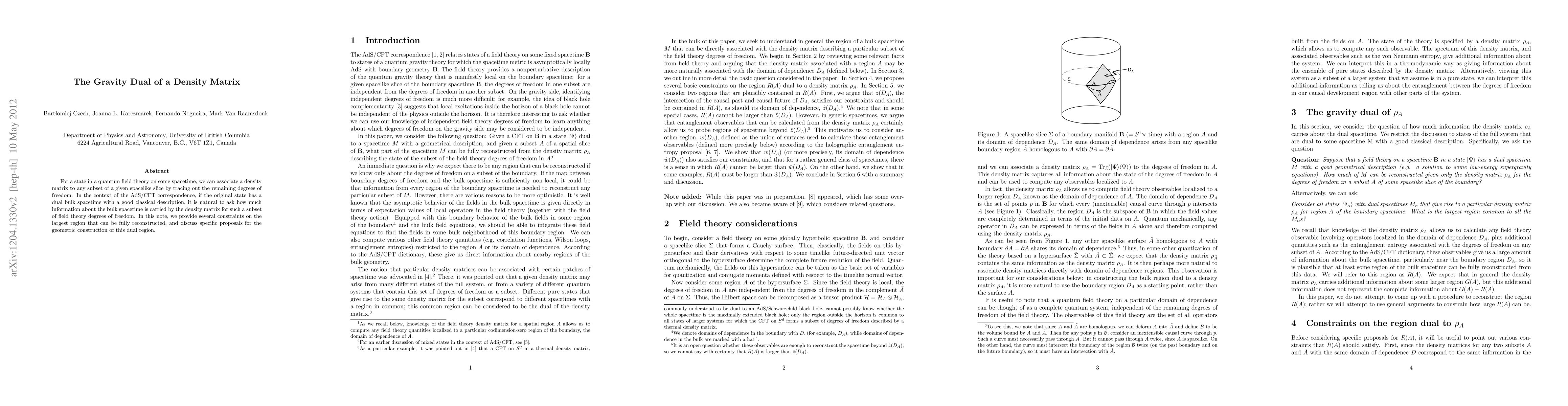 For a state in a quantum field theory on some spacetime, we can associate a density matrix to any subset of a given spacelike slice by tracing out the remaining degrees of freedom. In the context of the AdS/CFT correspondence, if the original state has a dual bulk spacetime with a good classical description, it is natural to ask how much information about the bulk spacetime is carried by the density matrix for such a subset of field theory degrees of freedom. In this note, we provide several constraints on the largest region that can be fully reconstructed, and discuss specific proposals for the geometric construction of this dual region.