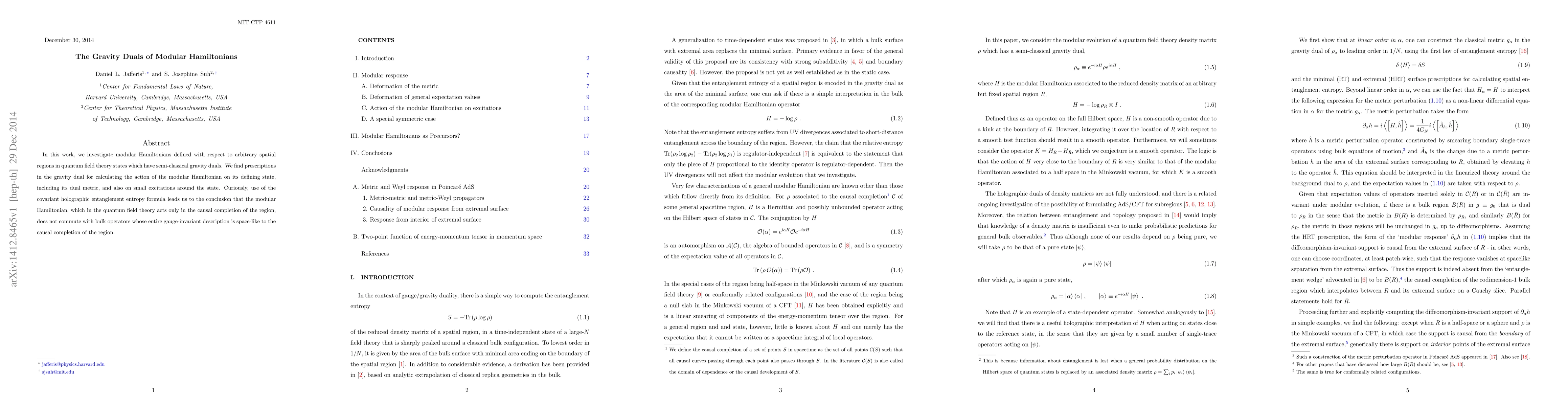 This paper explores modular Hamiltonians in quantum field theory states with semi-classical gravity duals, revealing a method to calculate their action in the dual metric. It concludes that the modular Hamiltonian does not commute with bulk operators whose entire gauge-invariant description is space-like to the region's causal completion.