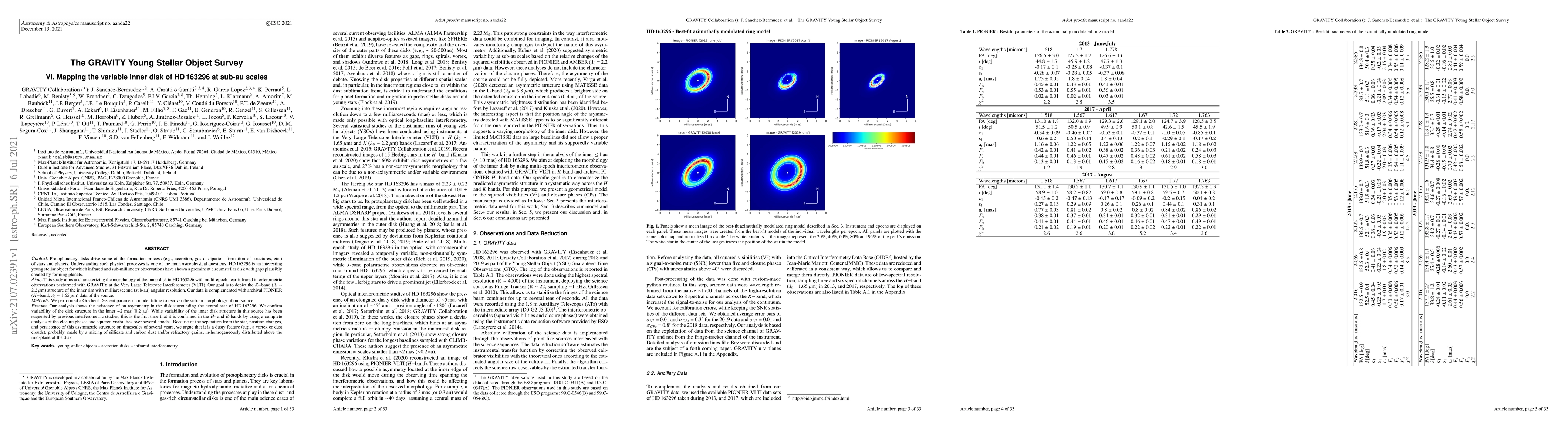 This study uses GRAVITY and PIONIER interferometric observations to map the inner disk of HD 163296, revealing an asymmetric, variable structure at sub-au scales. The findings confirm the presence of a persistent, dust-rich feature likely caused by a vortex or inhomogeneous dust distribution.