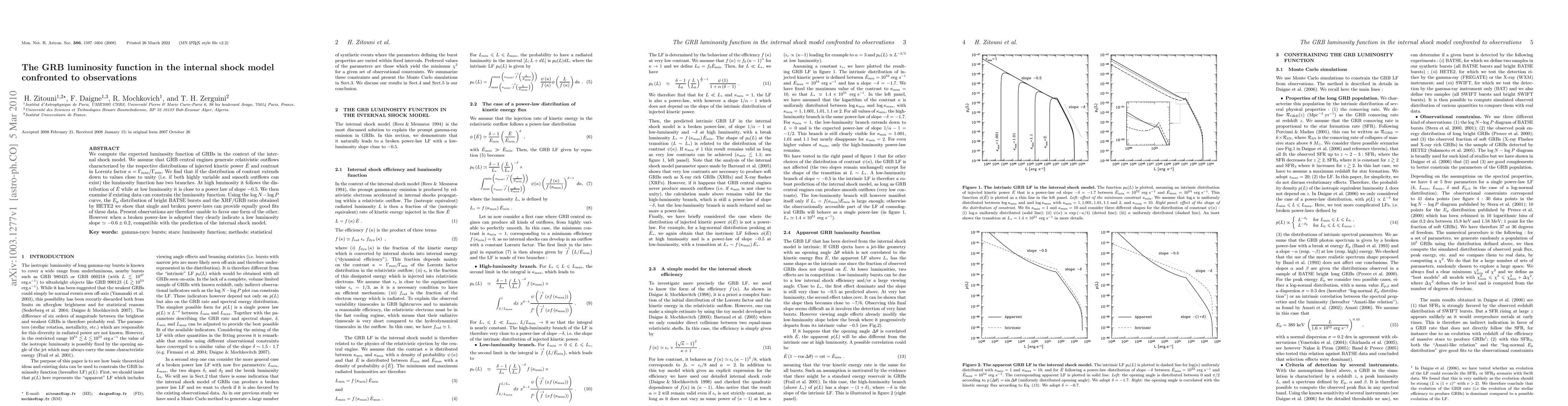 We compute the expected luminosity function of GRBs in the context of the internal shock model. We assume that GRB central engines generate relativistic outflows characterized by the respective distributions of injected kinetic power Edot and contrast in Lorentz factor Kappa = Gamma_max/Gamma_min. We find that if the distribution of contrast extends down to values close to unity (i.e. if both highly variable and smooth outflows can exist) the luminosity function has two branches. At high luminosity it follows the distribution of Edot while at low luminosity it is close to a power law of slope -0.5. We then examine if existing data can constrain the luminosity function. Using the log N - log P curve, the Ep distribution of bright BATSE bursts and the XRF/GRB ratio obtained by HETE2 we show that single and broken power-laws can provide equally good fits of these data. Present observations are therefore unable to favor one form of the other. However when a broken power-law is adopted they clearly indicate a low luminosity slope ~ -0.6 +- 0.2, compatible with the prediction of the internal shock model.
