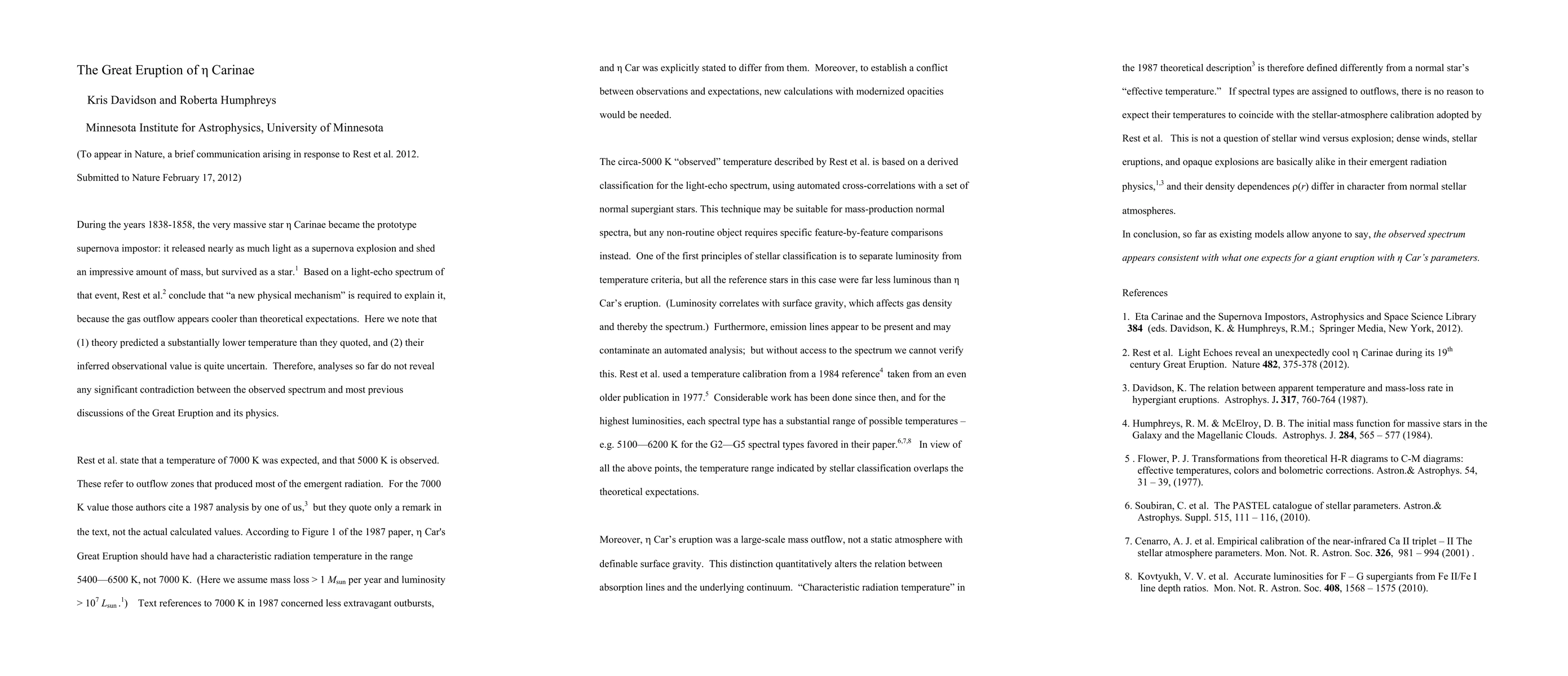 During the years 1838-1858, the very massive star {\eta} Carinae became the prototype supernova impostor: it released nearly as much light as a supernova explosion and shed an impressive amount of mass, but survived as a star.1 Based on a light-echo spectrum of that event, Rest et al.2 conclude that "a new physical mechanism" is required to explain it, because the gas outflow appears cooler than theoretical expectations. Here we note that (1) theory predicted a substantially lower temperature than they quoted, and (2) their inferred observational value is quite uncertain. Therefore, analyses so far do not reveal any significant contradiction between the observed spectrum and most previous discussions of the Great Eruption and its physics.