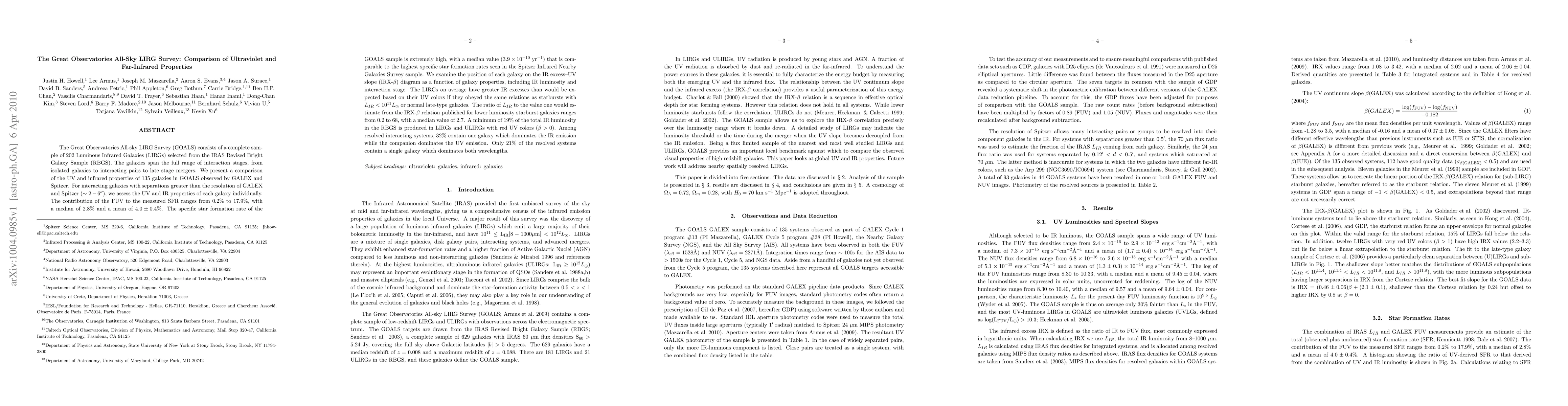 The Great Observatories All-sky LIRG Survey (GOALS) compares UV and far-infrared properties of 202 Luminous Infrared Galaxies (LIRGs), revealing high specific star formation rates and significant IR excesses. The study finds that LIRGs exhibit IR luminosities much greater than expected based on their UV colors, indicating complex interactions and starburst activities.