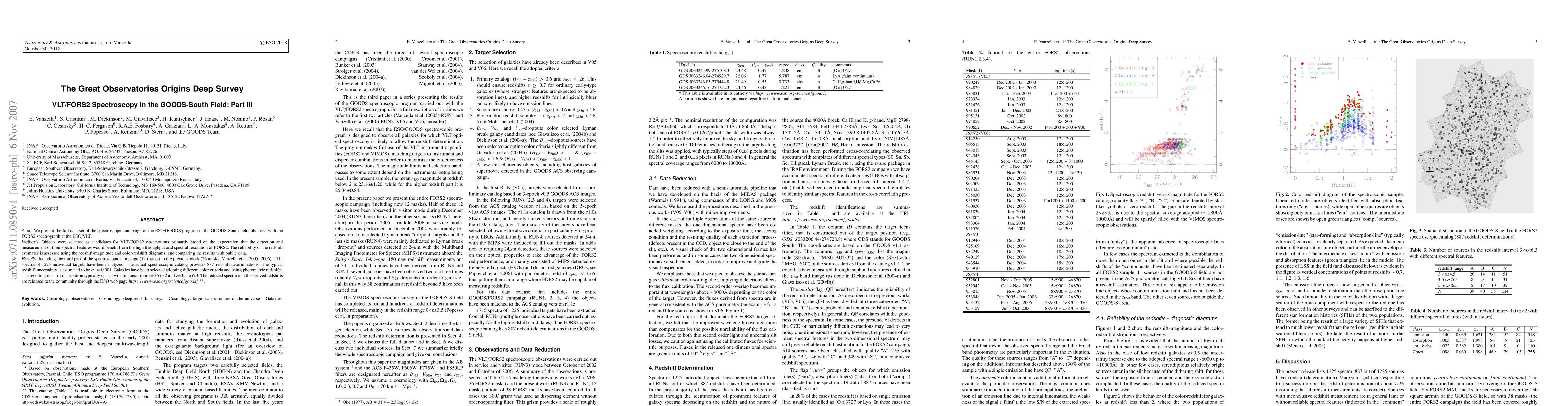 This paper presents a comprehensive spectroscopic survey of the GOODS-South field using the VLT/FORS2 spectrograph, resulting in 1715 spectra of 1225 targets with 887 redshift determinations. The survey spans redshifts from z=0.5 to 6.3, and the data is publicly available for further research.