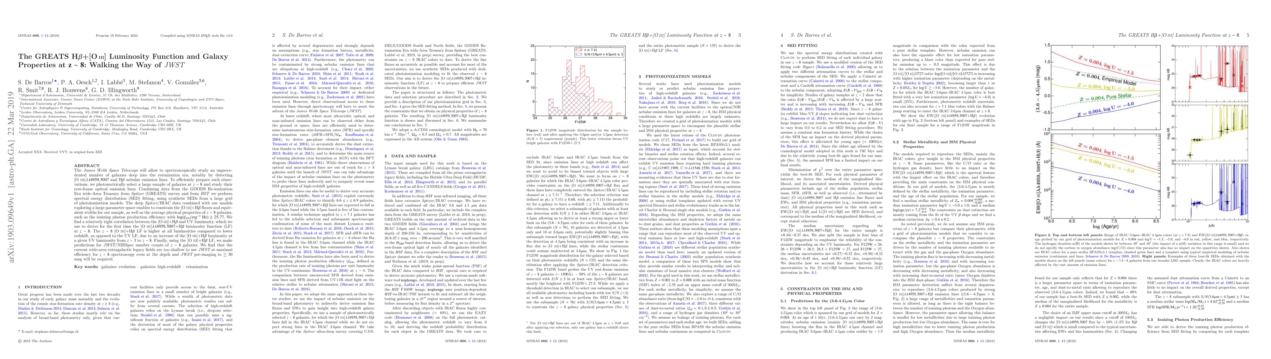 The paper presents a detailed analysis of z ~ 8 galaxies using deep Spitzer observations and a large grid of photoionization models, deriving the [OIII]+Hβ LF and making predictions for JWST observations.