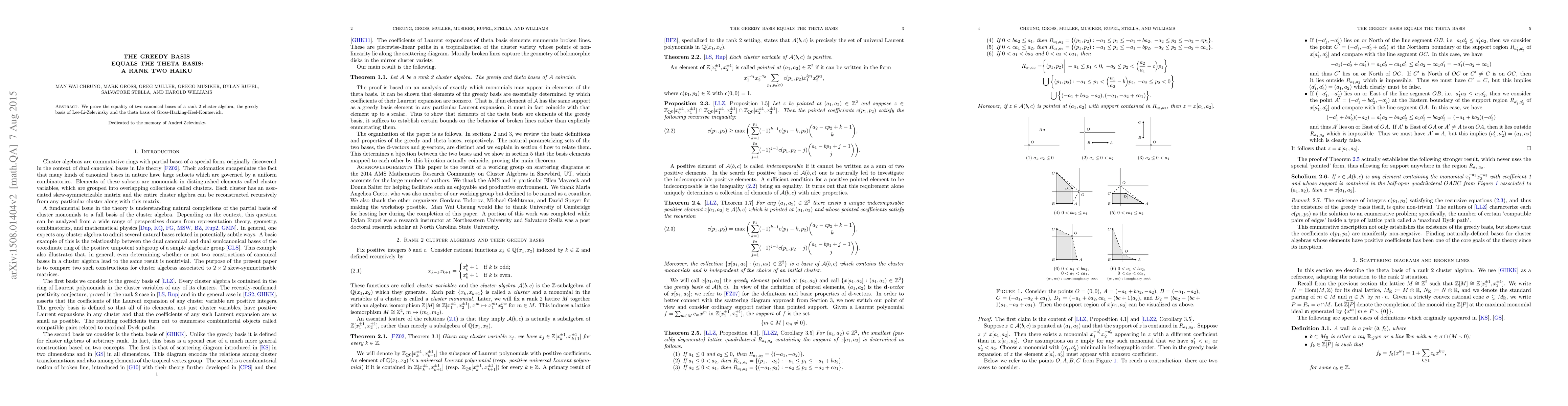 Researchers prove that two canonical bases in cluster algebras, the greedy basis and theta basis, are equal for rank 2 cluster algebras.