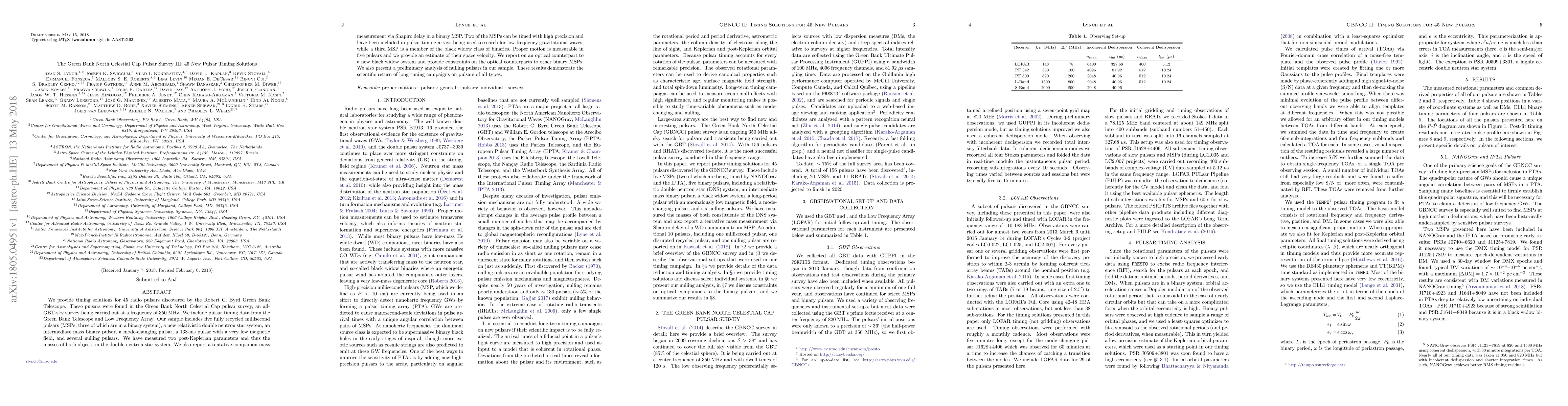 This paper reports timing solutions for 45 newly discovered radio pulsars from the Green Bank North Celestial Cap survey, including diverse types such as millisecond pulsars, a double neutron star system, and nulling pulsars. The study highlights the scientific value of long-term pulsar timing for gravitational wave searches and proper motion measurements.