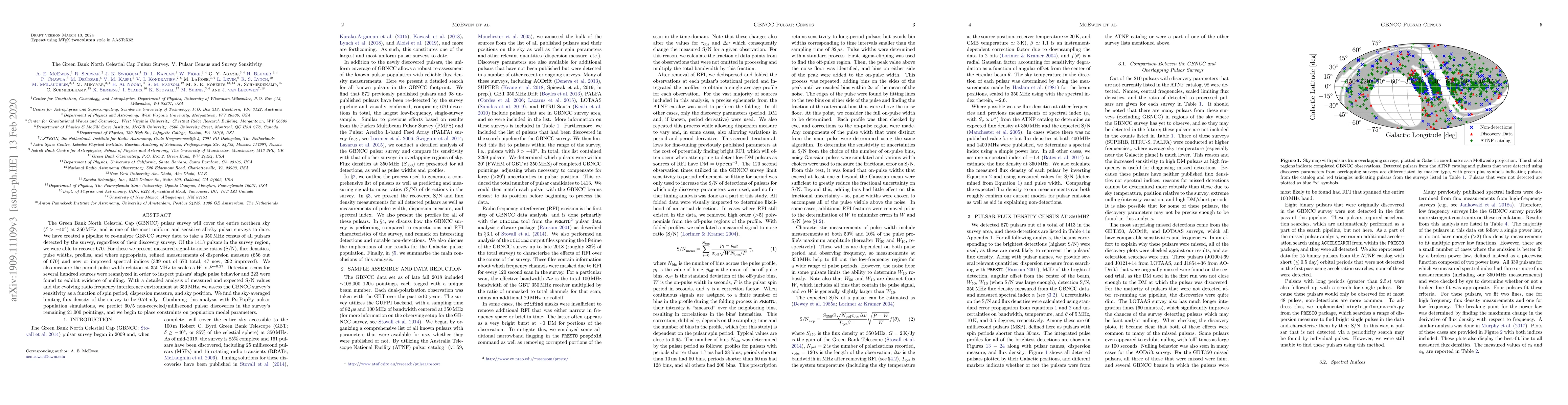 The Green Bank North Celestial Cap pulsar survey has re-analyzed its data to conduct a comprehensive census of 1413 detected pulsars, recovering 661 with refined measurements. The survey's sensitivity is assessed, predicting 60/5 new non-recycled/millisecond pulsar discoveries in remaining observations, and placing constraints on population model parameters.
