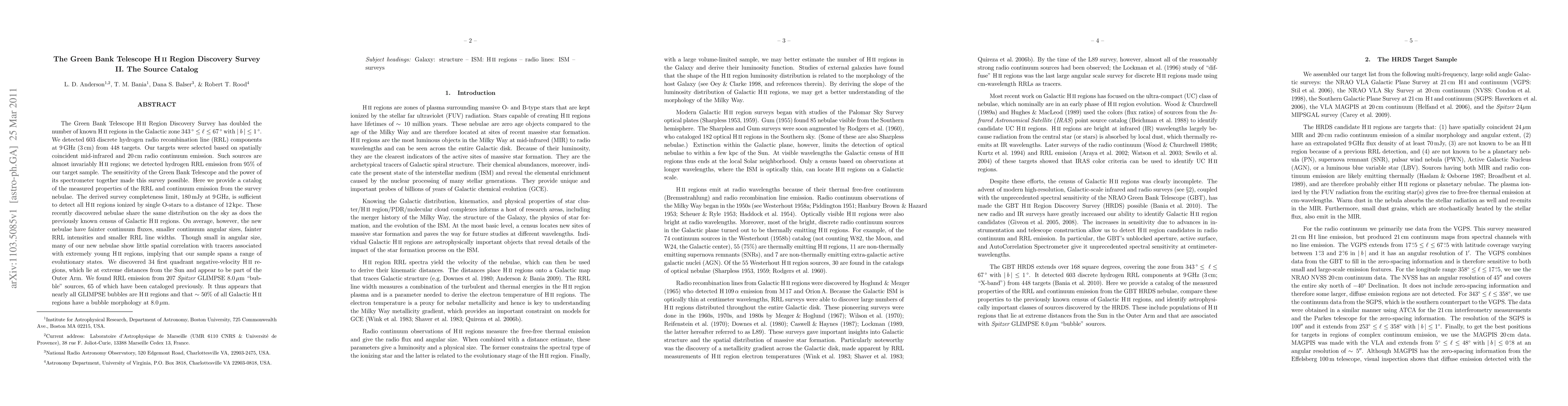 The Green Bank Telescope HII Region Discovery Survey doubled the number of known HII regions in a specific Galactic zone, detecting 603 hydrogen radio recombination line components from 448 targets. The survey catalog provides detailed properties of these nebulae, revealing a new population with fainter emissions and smaller sizes, suggesting a range of evolutionary states.
