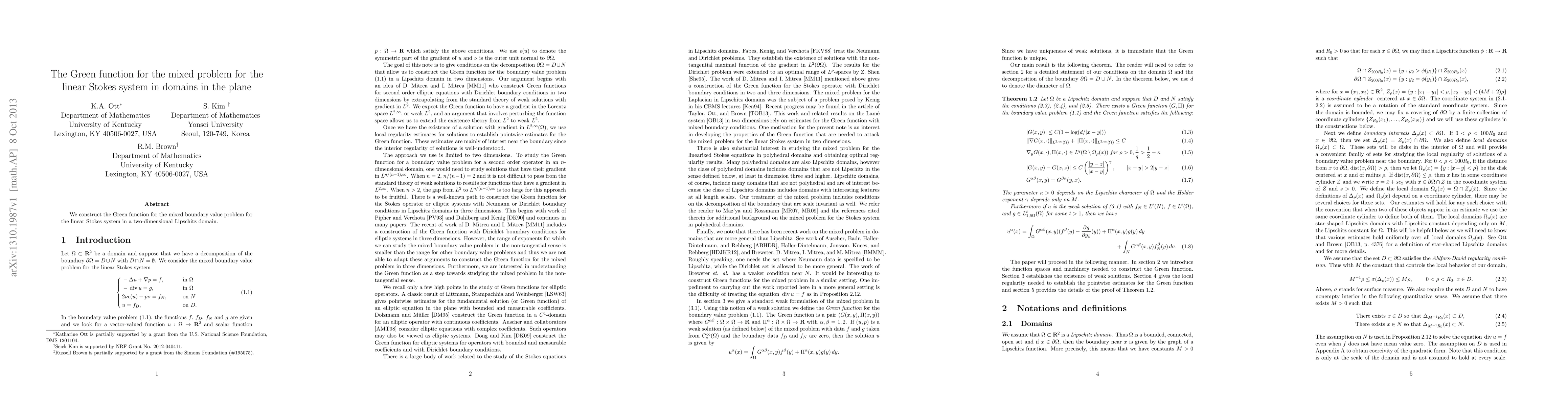 We construct the Green function for the mixed boundary value problem for the linear Stokes system in a two-dimensional Lipschitz domain.