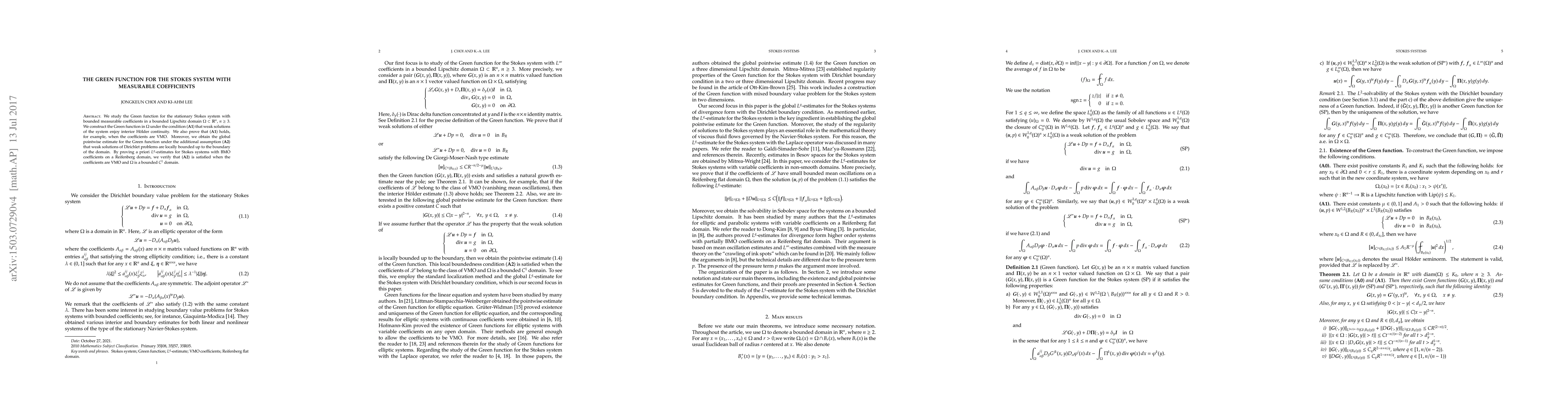 This research constructs the Green function for the Stokes system with measurable coefficients in a bounded Lipschitz domain, under specific conditions. It proves the conditions hold for coefficients that are in the VMO space and provides global pointwise estimates under additional assumptions, verified for VMO coefficients in bounded C^1 domains.