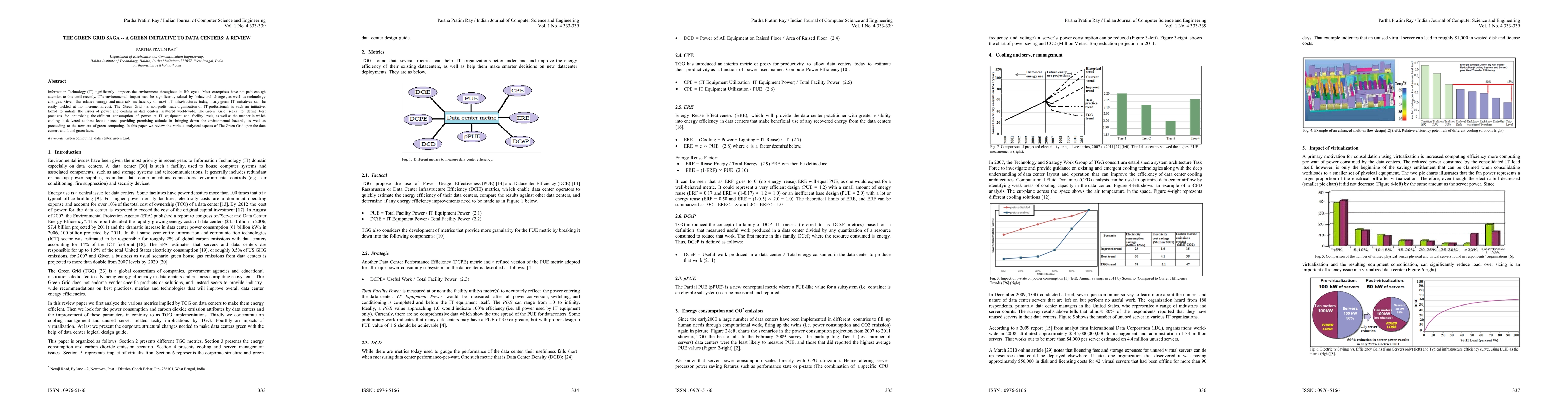 This paper reviews The Green Grid's efforts to optimize power and cooling in data centers, aiming to reduce environmental impact and promote green computing through best practices in energy efficiency. The initiative, led by a non-profit organization of IT professionals, seeks to address inefficiencies in IT infrastructures with minimal cost.