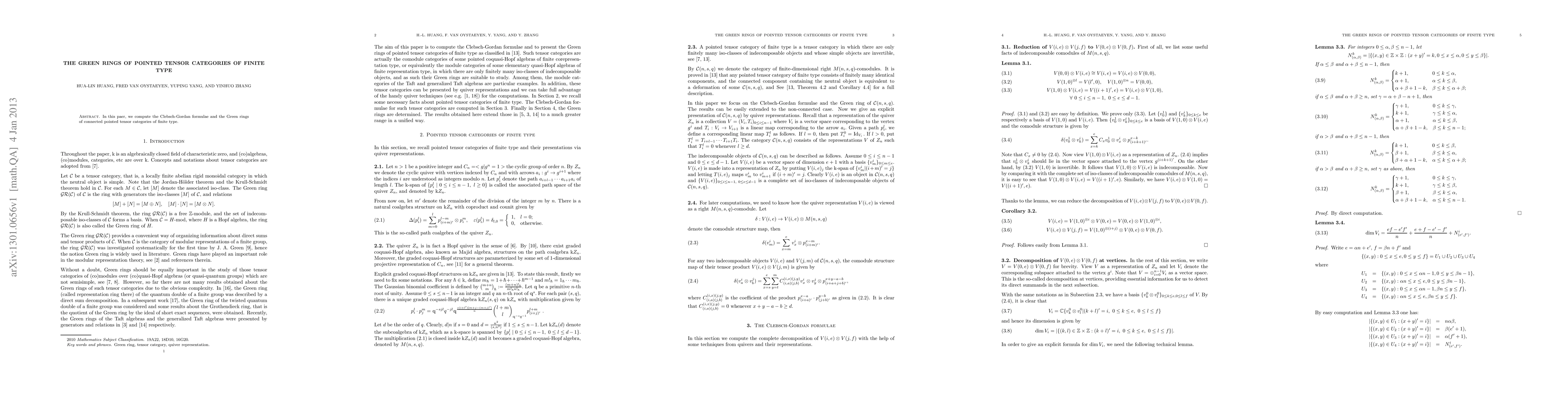 This paper computes the Clebsch-Gordan formulae and determines the structure of Green rings in connected pointed tensor categories of finite type, providing insights into their combinatorial and algebraic properties.