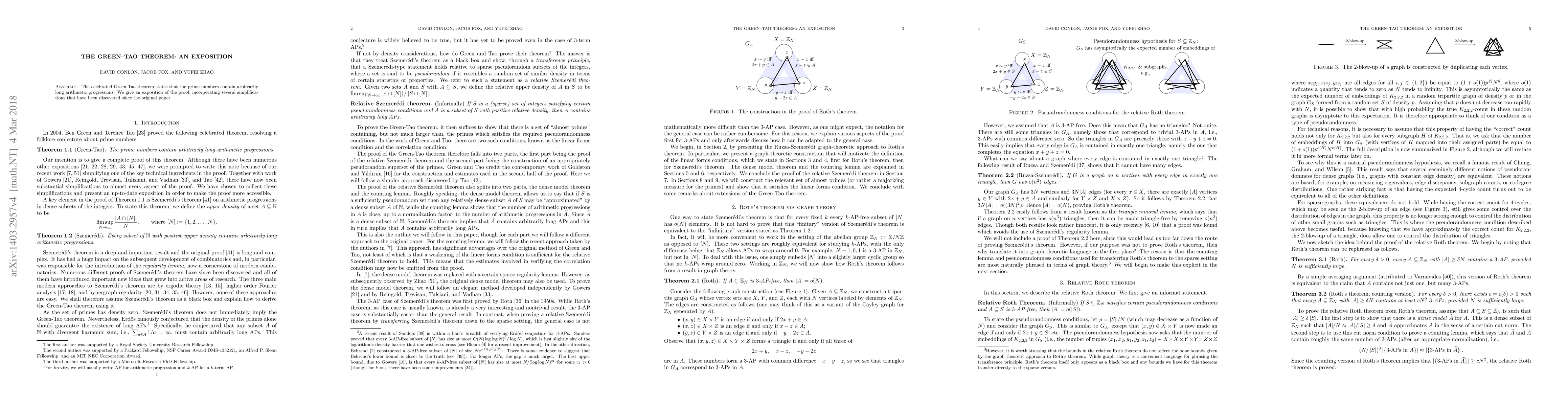 Summary: The Green-Tao theorem demonstrates that prime numbers contain arbitrarily long arithmetic progressions. This exposition simplifies the original proof, incorporating recent improvements and clarifications.
