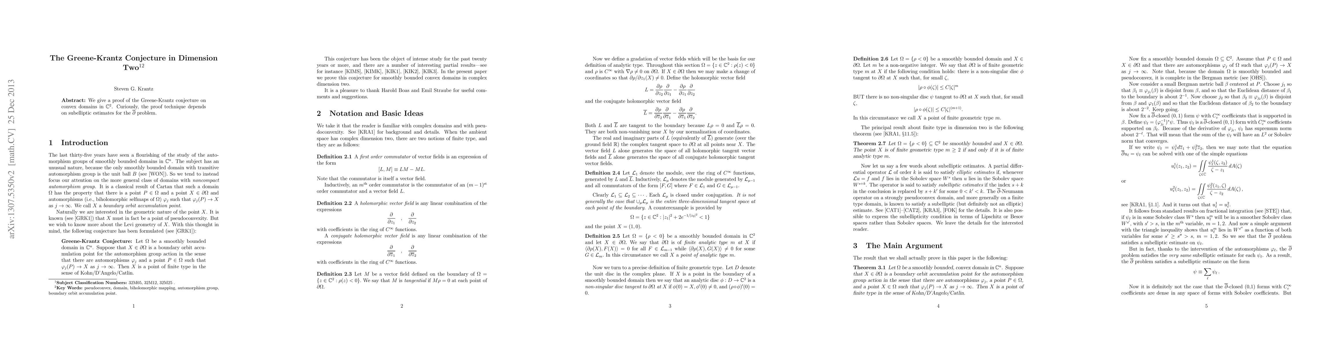 The paper provides a proof of the Greene-Krantz conjecture for convex domains in $ ext{C}^2$, utilizing subelliptic estimates for the ar{π} problem.