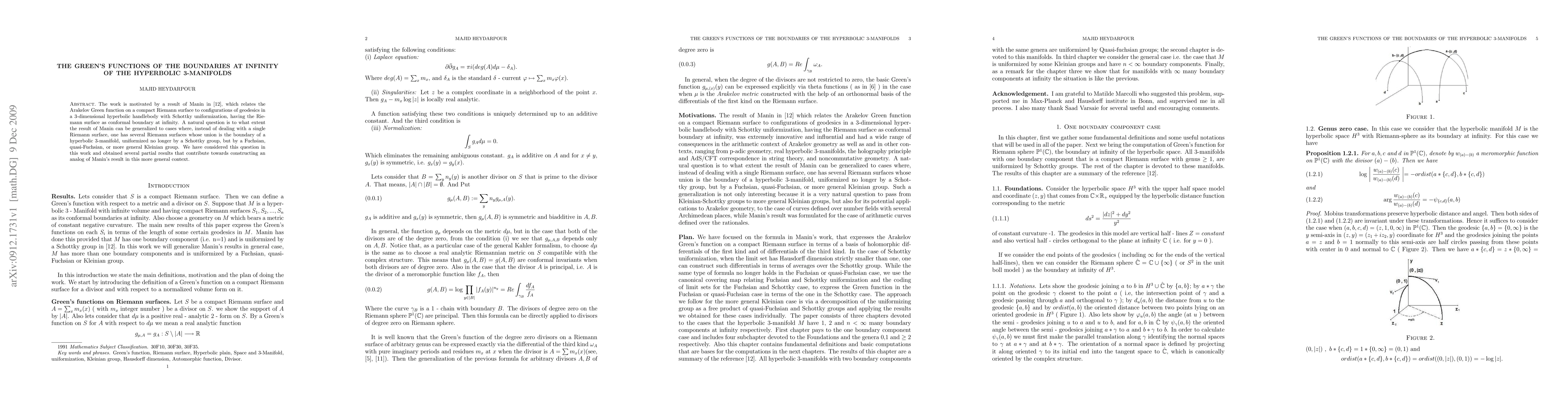 This paper explores the generalization of Manin's result on the Arakelov Green function to multiple Riemann surfaces forming the boundary of hyperbolic 3-manifolds uniformized by Fuchsian, quasi-Fuchsian, or Kleinian groups, aiming to construct a similar result in this broader context. Partial results are presented that advance towards this goal.