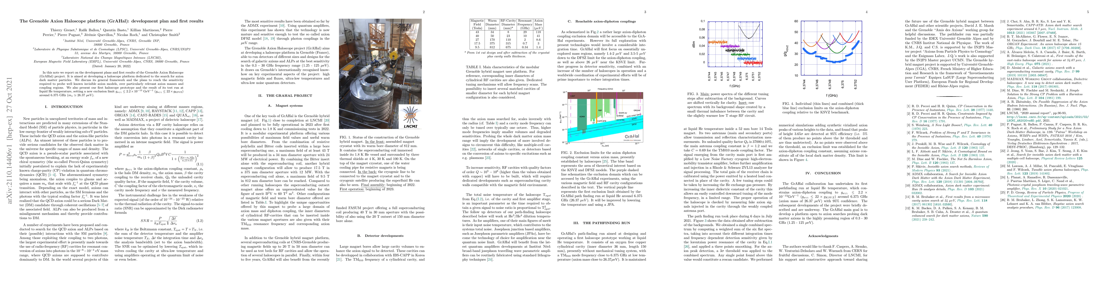 In this note we report on the development plans and first results of the Grenoble Axion Haloscope (GrAHal) project. It is aimed at developing a haloscope platform dedicated to the search for axion dark matter particles. We discuss its general framework and the plans to reach the sensitivity required to probe well known invisible axion models, over particularly relevant axion masses and coupling regions. We also present our first haloscope prototype and the result of its test run at liquid He temperature, setting a new exclusion limit $g_{a \gamma \gamma} \leq 2.2 \times 10^{-13}~ \text{GeV}^{-1}$ ($g_{a \gamma \gamma} \leq 22 \times g_{\text{KSVZ}}$) around 6.375 GHz ($m_a \simeq 26.37$ $\mu \text{eV}$).