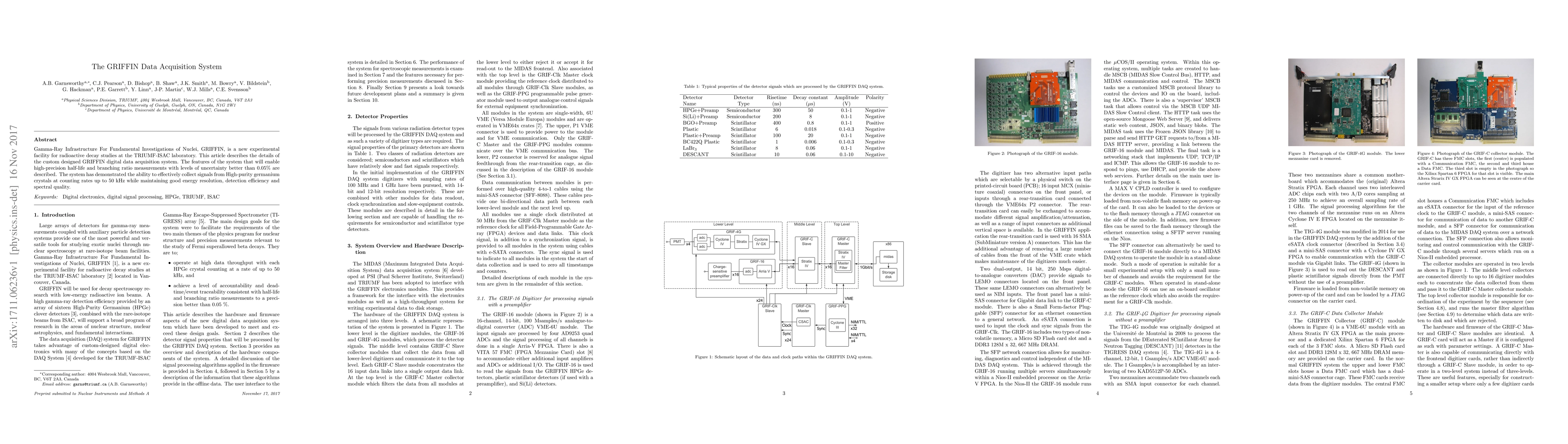 The GRIFFIN data acquisition system represents a significant technical contribution with its custom design tailored for high-precision measurements, incorporating advanced hit detection, pile-up recovery, and event traceability mechanisms.