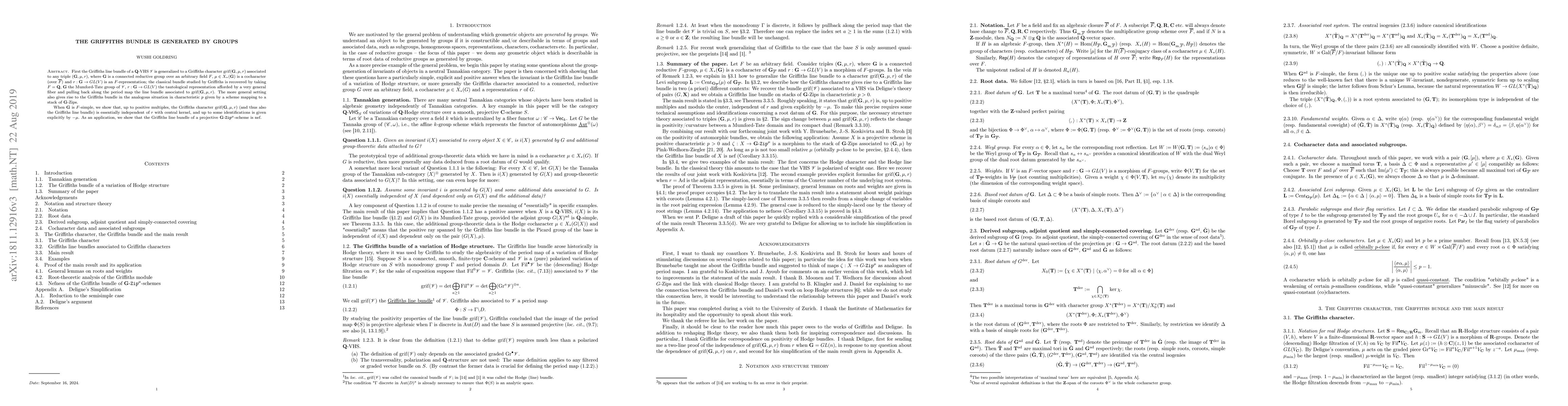 This paper generalizes the Griffiths line bundle to a Griffiths character associated with a triple involving a reductive group, a cocharacter, and a representation. It demonstrates that the Griffiths character is essentially independent of the representation when the group is simple, and applies this to show the nefness of the Griffiths line bundle for certain projective schemes.