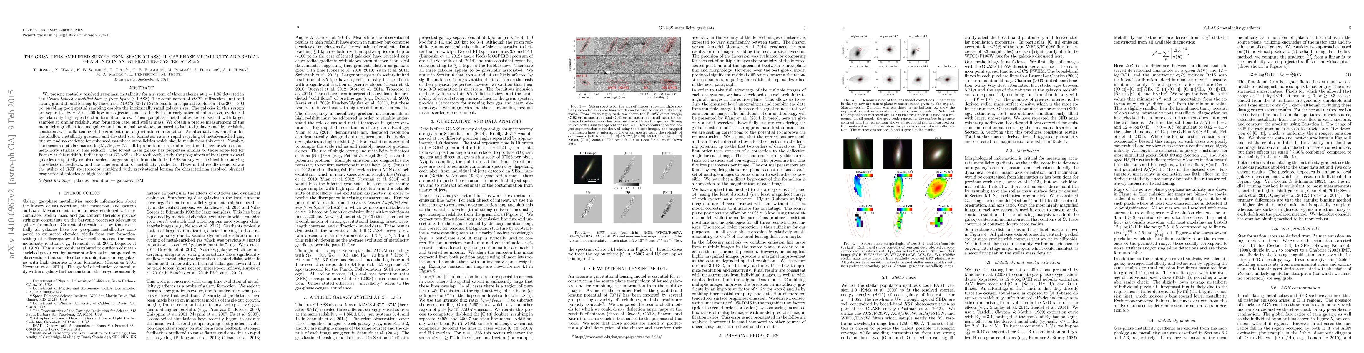We present spatially resolved gas-phase metallicity for a system of three galaxies at z=1.85 detected in the Grism Lens-Amplified Survey from Space (GLASS). The combination of HST's diffraction limit and strong gravitational lensing by the cluster MACS J0717+3745 results in a spatial resolution of ~200-300 pc, enabling good spatial sampling despite the intrinsically small galaxy sizes. The galaxies in this system are separated by 50-200 kpc in projection and are likely in an early stage of interaction, evidenced by relatively high specific star formation rates. Their gas-phase metallicities are consistent with larger samples at similar redshift, star formation rate, and stellar mass. We obtain a precise measurement of the metallicity gradient for one galaxy and find a shallow slope compared to isolated galaxies at high redshift, consistent with a flattening of the gradient due to gravitational interaction. An alternative explanation for the shallow metallicity gradient and elevated star formation rate is rapid recycling of metal-enriched gas, but we find no evidence for enhanced gas-phase metallicities which should result from this effect. Notably, the measured stellar masses log(M/Msun) = 7.2-9.1 probe to an order of magnitude below previous mass-metallicity studies at this redshift. The lowest mass galaxy has properties similar to those expected for Fornax at this redshift, indicating that GLASS is able to directly study the progenitors of local group dwarf galaxies on spatially resolved scales. Larger samples from the full GLASS survey will be ideal for studying the effects of feedback, and the time evolution of metallicity gradients. These initial results demonstrate the utility of HST spectroscopy combined with gravitational lensing for characterizing resolved physical properties of galaxies at high redshift.