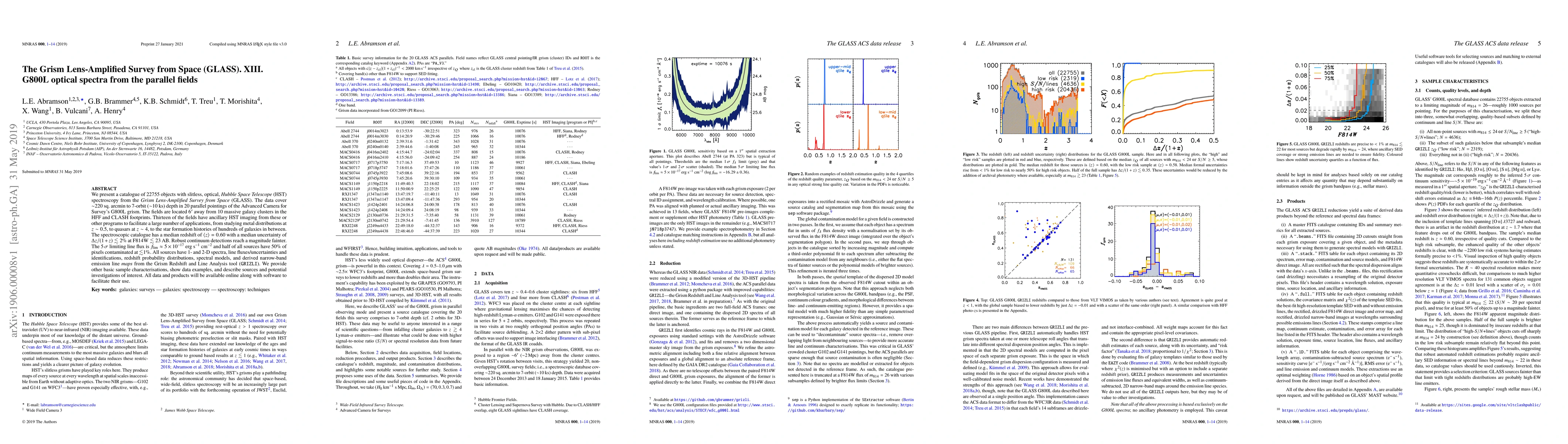 This paper presents a catalogue of 22,755 objects with slitless optical spectroscopy from the GLASS survey using the HST's G800L grism, covering 220 sq. arcmin and facilitating studies from metal distributions to quasars and star formation histories. The catalogue has a median redshift of 0.6 with robust continuum detections reaching fainter magnitudes.